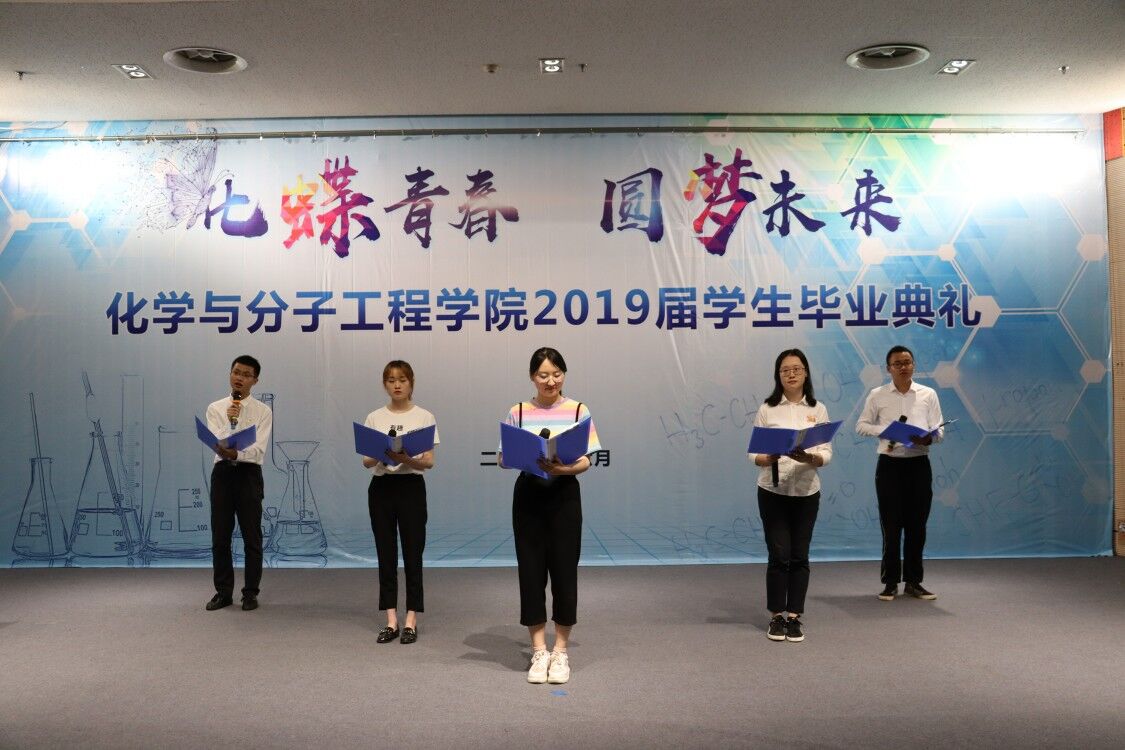“百年历史,百年沧桑,百年学府业绩辉煌;桃李满天下,为国育栋梁”,毕业典礼在嘹亮的校歌声中拉开帷幕。公司党委书记潘运军宣读了考研、就业先进集体和先进个人名单,副经理刘睿宣读了优秀毕业生名单。院领导和博士生导师代表依次为优秀毕业生颁奖,拨穗;硕士生导师代表为其他全体毕业生依次拨穗。拨穗完毕,全体毕业生向老师鞠躬致谢师礼。研1602班赵贵、化学1501班孟怡辰代表毕业生发言,回忆青春化蝶,感谢感恩母校母院;万剑峰先生代表毕业生家长感谢公司四年的培养,祝福公司蓬勃发展;化学1602班曹一博代表全体在校生祝学长学姐不忘初心,飞得更高,走的更远;副经理刘睿代表教师殷切寄语毕业生走好人生每一步;员工冯志强勉励毕业生做志存高远的新青年;5位毕业生用诗朗诵的方式回忆了在浦园的一千多日日夜夜,表达了对母校的厚爱和不舍。最后,经理杨文忠教授发言,希望大家在走入社会时,要持有信心和积极的态度,注意能力和方法,坚守品行和底线,在学习中增长知识、锤炼品格,在工作中培养才干、练就本领,化蝶青春,圆梦未来!毕业典礼在悠扬的送别乐曲中圆满结束。
