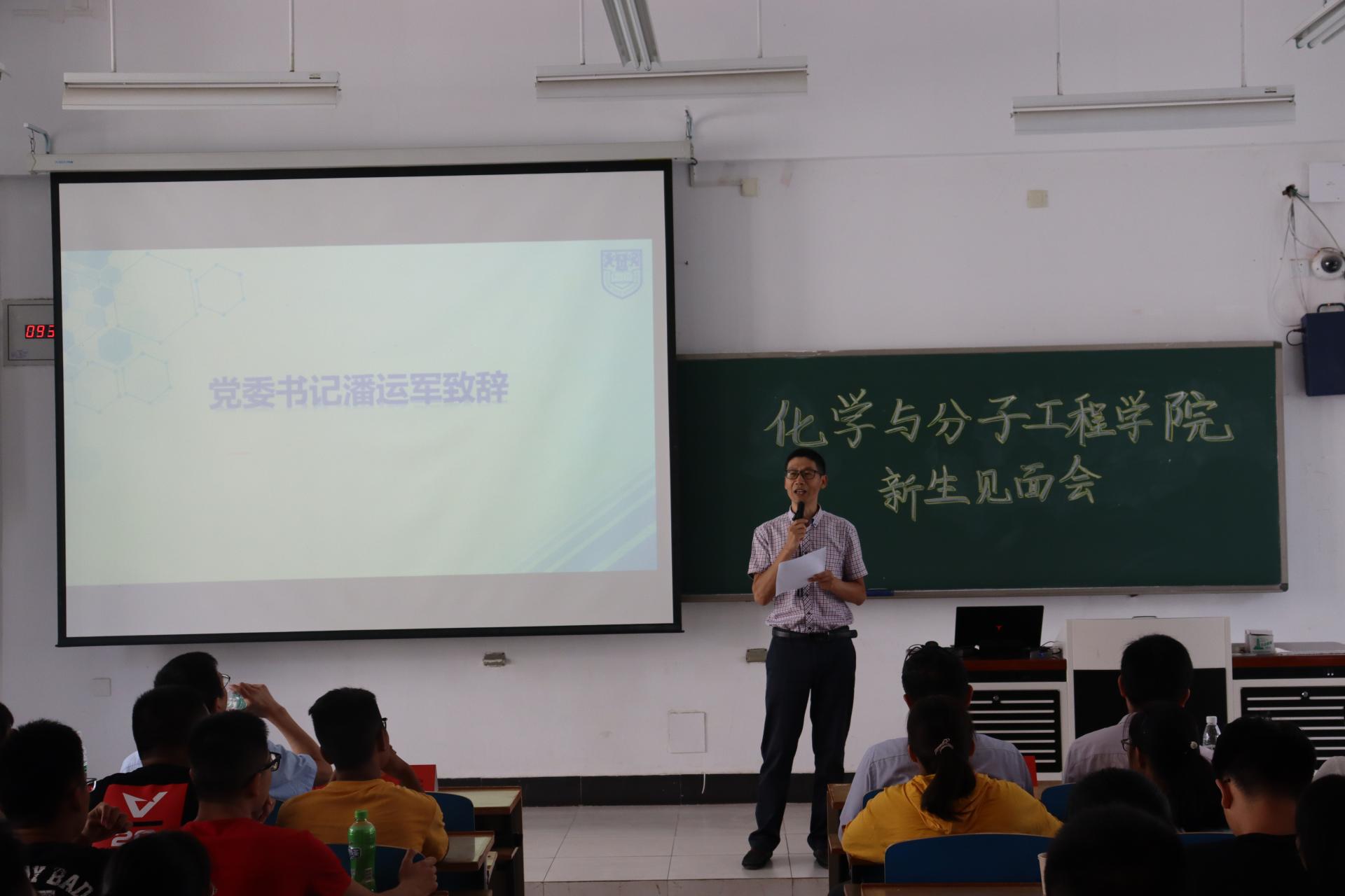 2019年9月8日上午9点30分,太阳成集团tyc在厚学400召开了2019级新生见面会。出席本次见面会的有公司党委书记潘运军副教授、经理杨文忠教授、党委副书记陈晓晔老师、副经理唐永明教授、副经理刘睿教授、学办全体辅导员以及全体新生。本次会议由公司党委副书记陈晓晔老师主持。