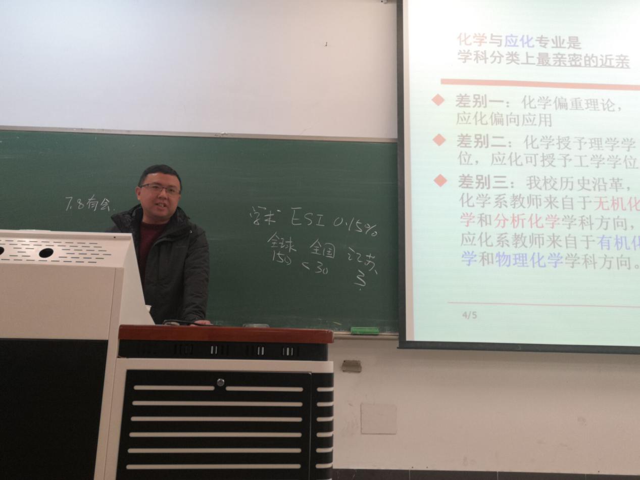 随后,吴文源老师对化学专业做了全面介绍,并着重从公司的历史沿革、学位授予、以及专业培养方案、课程设置等多个角度阐述了两个专业的区别,并对同学们提出的问题进行了详细的解答。