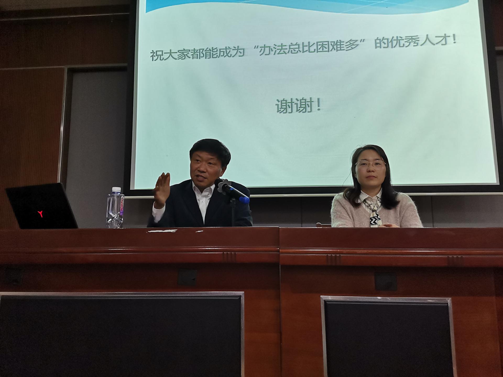 会上,高明教授从老员工的成长之路谈起,提出“成人是根本,成才是关键,成功是目标”,从辩证唯物主义与方法论、历史唯物主义与方法论两个方面为大家讲述成功的关键,并与同学们分享了个人感悟,解答了同学们的疑惑。高明教授的报告深入浅出、引经据典、旁征博引为同学们开启了一扇通往“成人成长成功”的智慧之门。
