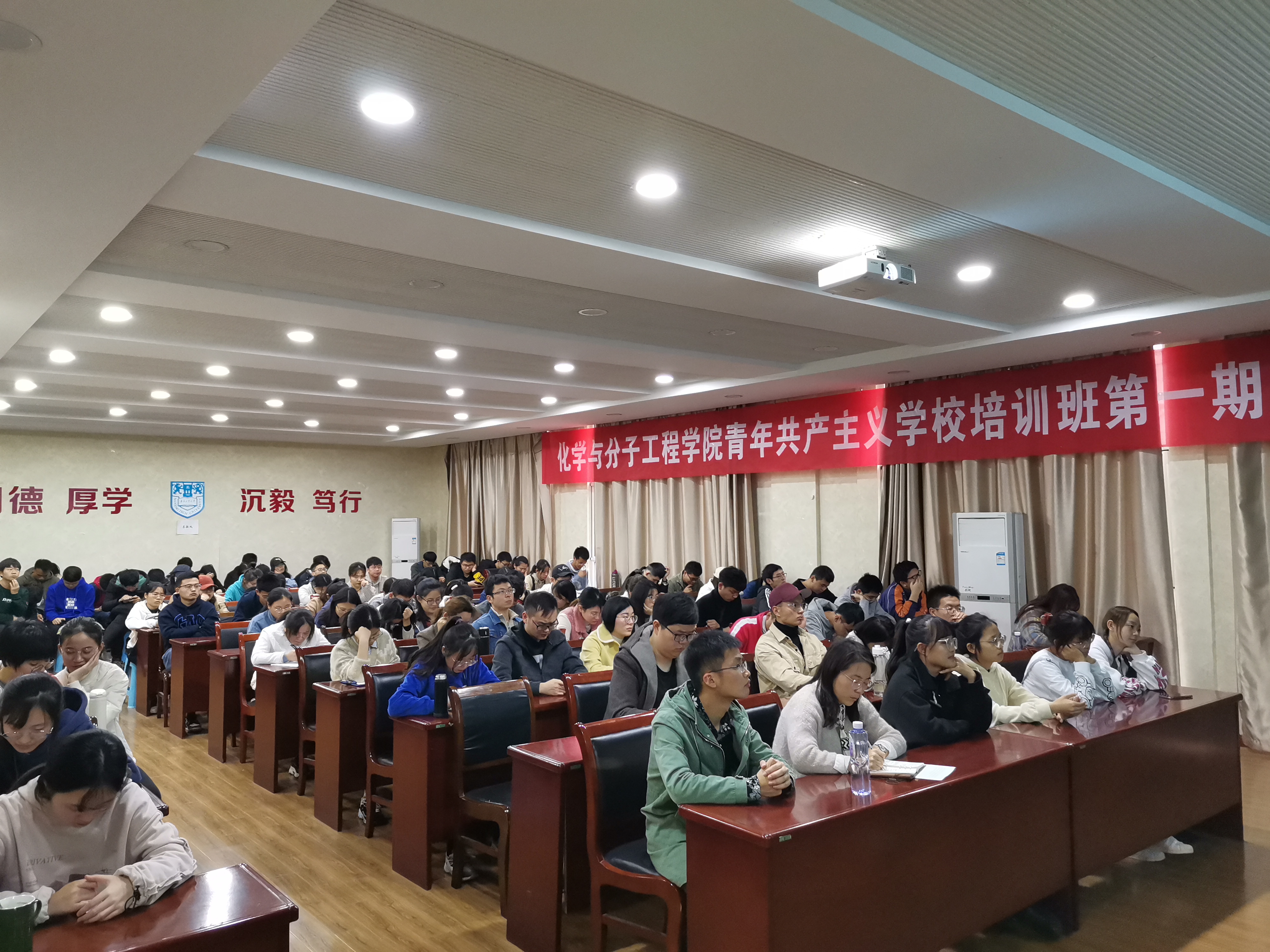 为深入学习贯彻习近平新时代中国特色社会主义思想,提升员工骨干的政治理论修养、员工工作实操能力与青年工作本领,11月20日,化学与分子工程院举办第一期青年共产主义公司培训班。原公司党委副书记副董事长、员工总会副会长兼秘书长高明教授为公司员工骨干作“只为成功找方法——方法论视野中的‘成人、成才、成功’”报告。公司领导、学办全体辅导员和120余名员工骨干参与。报告会由公司党委副书记王丽娟主持。