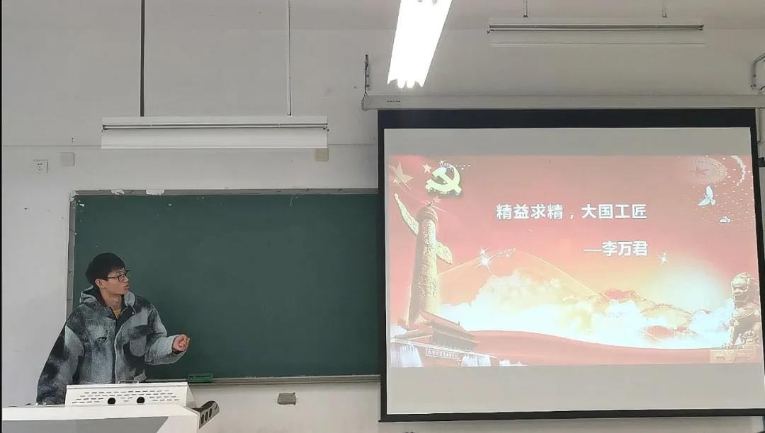 主持人讲述了百年党史中的光辉事迹,带领同学们回顾中国共产党的成立与发展。预备党员李顺乐同学讲述了“精益求精,大国工匠”爱国工匠李万君同志的党员故事,引导支部成员发扬实践为先、勇于创新创造的精神。随后,同学们积极分享自己的感悟:张一果同学提到 “中国共产党人用实际行动践行着他们的初心与使命——为中国人民谋幸福,为中华民族谋复兴”;苏子昂同学表示 “我们应该把握机遇,敢于创新,助力中华民族伟大复兴”。