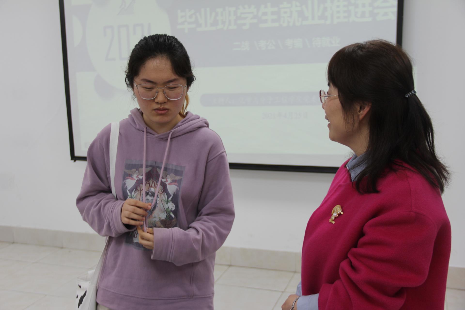 会后,王丽娟副书记现场解答了部分同学的疑问,通过有针对性的指导意见鼓励同学们在就业道路上从容地迈出第一步。此次就业推进会的召开,为2021届待就业毕业生积极转变就业观念,认清就业形势,培养自我意识奠定了良好的基础。后续,公司将进一步落实“一生一策”实施方案,加强精准指导,推进毕业生高质量就业。