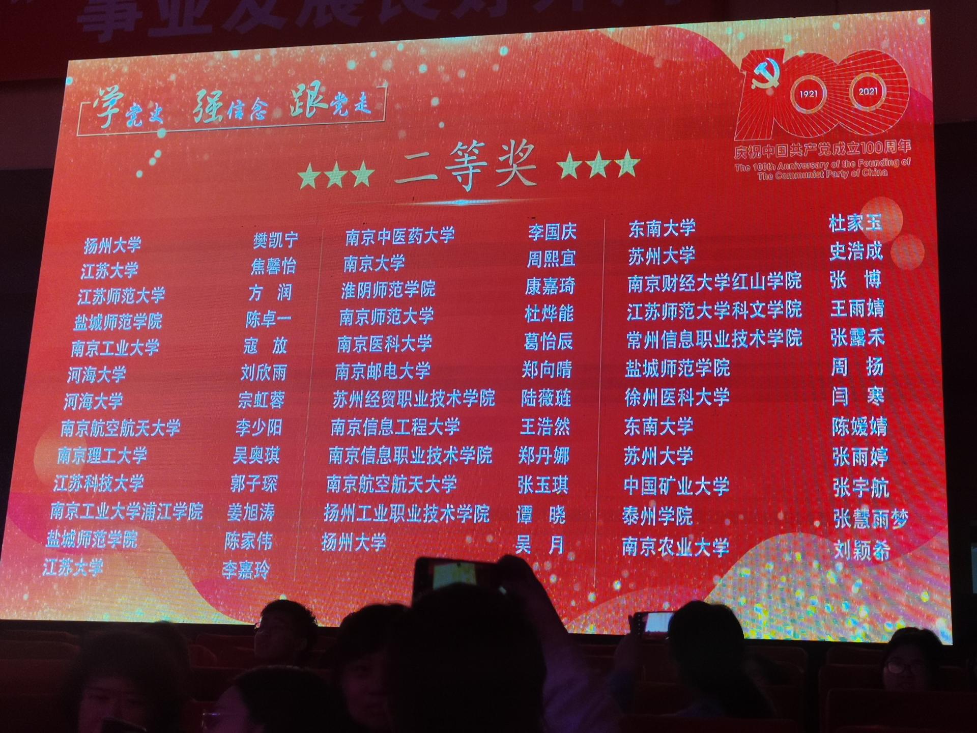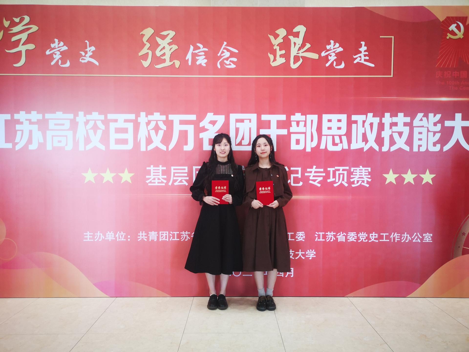 4月25日,由共青团江苏省委联合江苏省委教育工委、江苏省委党史工作办公室共同主办的江苏高校百校万名团干部思政技能大比武基层团支部书记专项赛决赛在镇江成功举行。公司应化1903团支书寇放同学、化学1902团支书崔妍同学代表公司参赛,分别荣获大赛二等奖、三等奖。