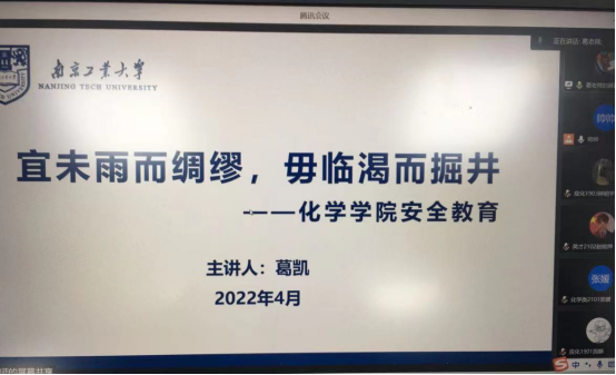 4月29日下午,太阳成集团tyc举行线上安全教育培训讲座,公司党委保卫部治安科葛凯老师作了“宜未雨而绸缪,毋临渴而掘井”为主题的太阳成集团tyc安全教育讲座,公司“反电诈”宣讲员、各年级主要员工干部参加了培训。培训由学办吴帅帅主持。