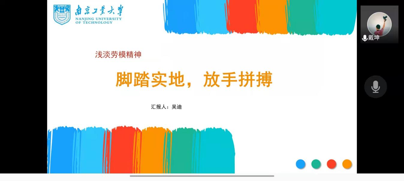 5月6日下午,公司线上“员工说”讲坛顺利举办。讲坛邀请2014届员工、江苏省五一劳动奖章获得者、江苏景宏新材料科技有限公司研发经理吴迪作了题为“浅淡劳模精神:脚踏实地,放手拼搏”的就业指导讲座,公司2018级、2019级员工聆听了讲座。讲座由辅导员吴帅帅老师主持。