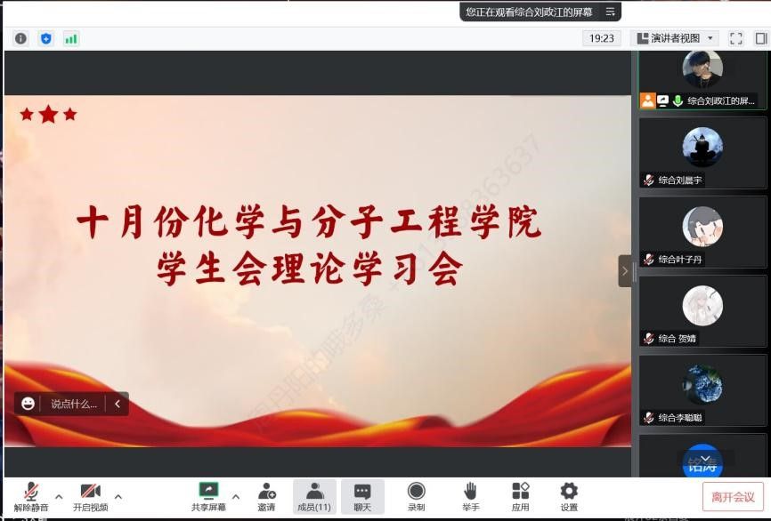为了深入学习贯彻党的二十大精神,引导公司员工会正确的发展,10月31日晚,公司员工会在腾讯会议举行十月理论学习会,公司团委崔灏灏老师,员工会主席团、部长团和全体干事参加理论学习会。