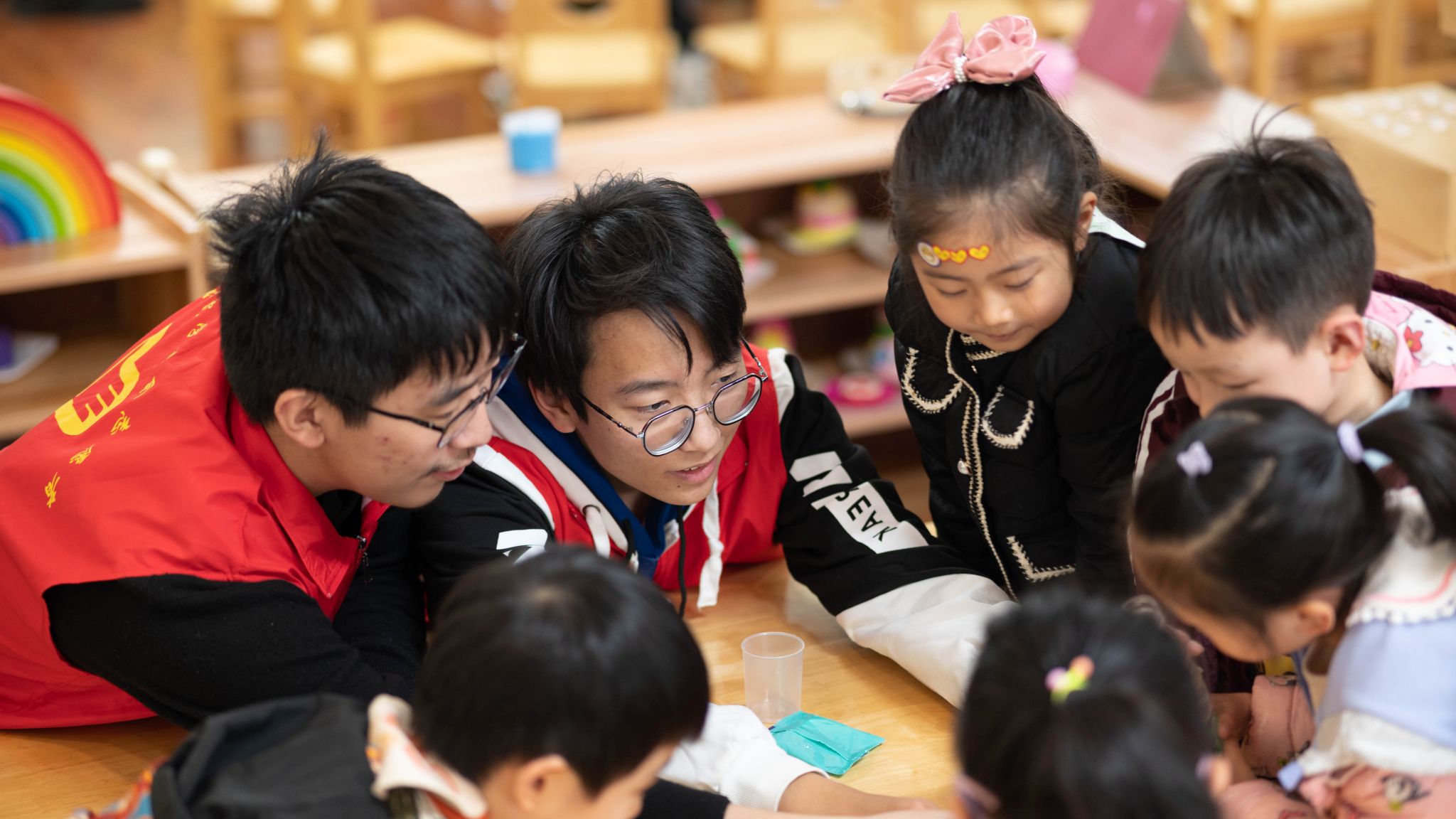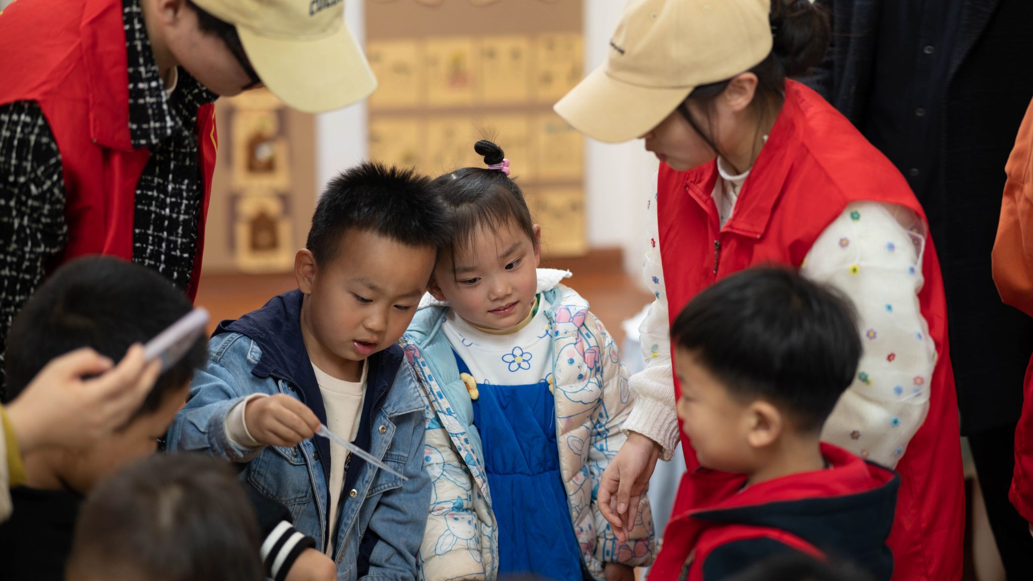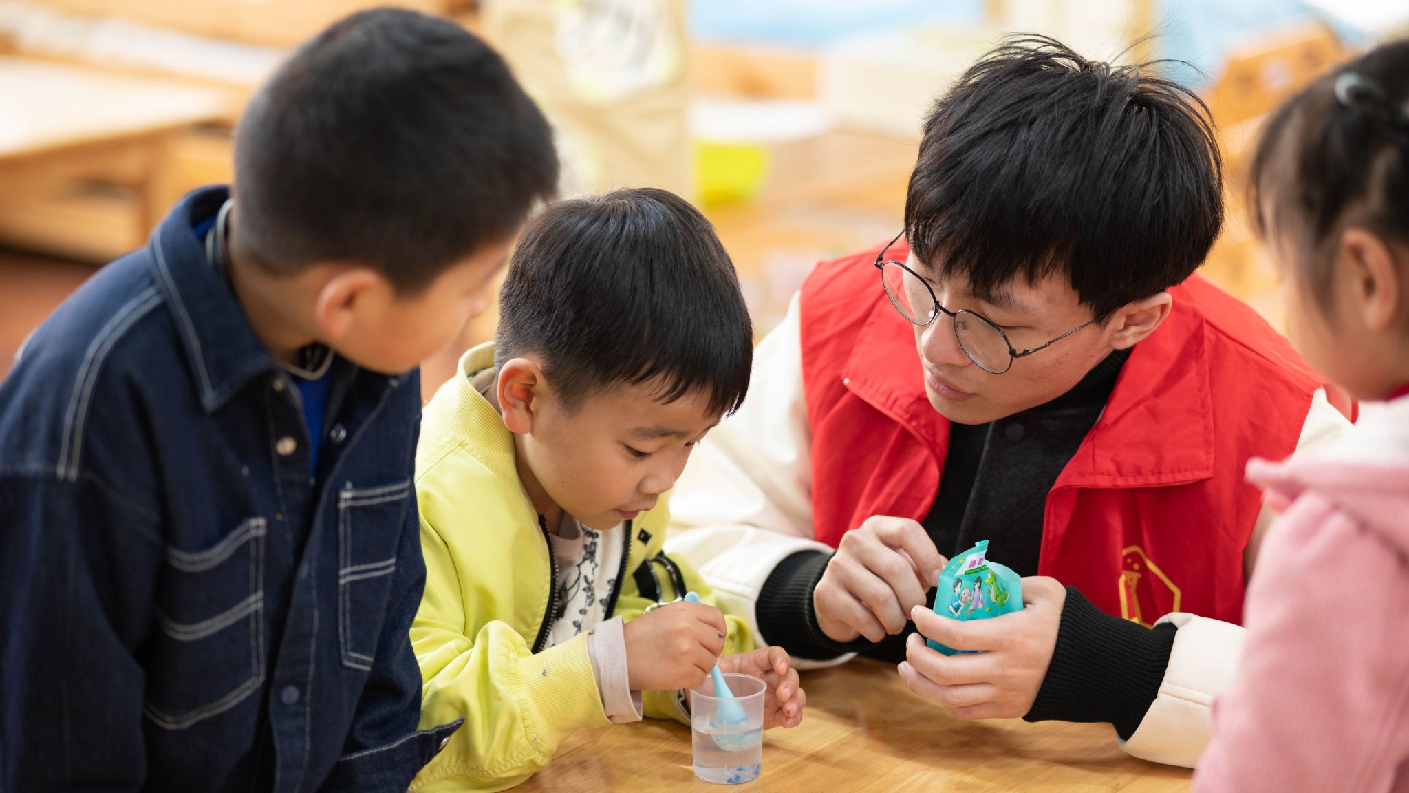 活动中,公司小青桐志愿者们化身“科普讲师”面向幼儿园中班的员工分别演示《人造雪》《无字天书》《变色花》等实验,向小朋友们详细介绍其中蕴含的奇妙化学知识,并指导他们独自完成《制作水精灵》和《神奇的沙子》实验,小朋友们积极参与,在欢声笑语中领略化学魅力。