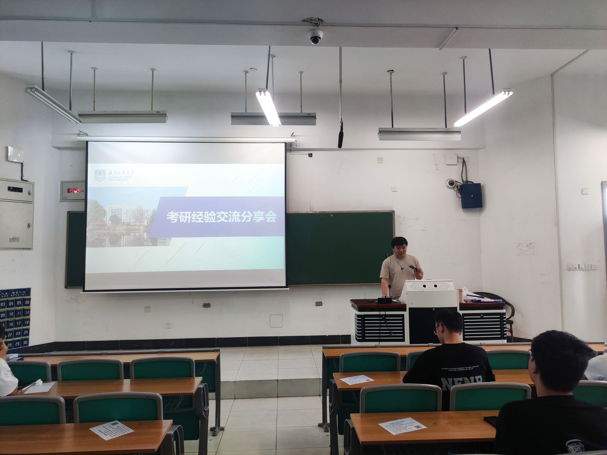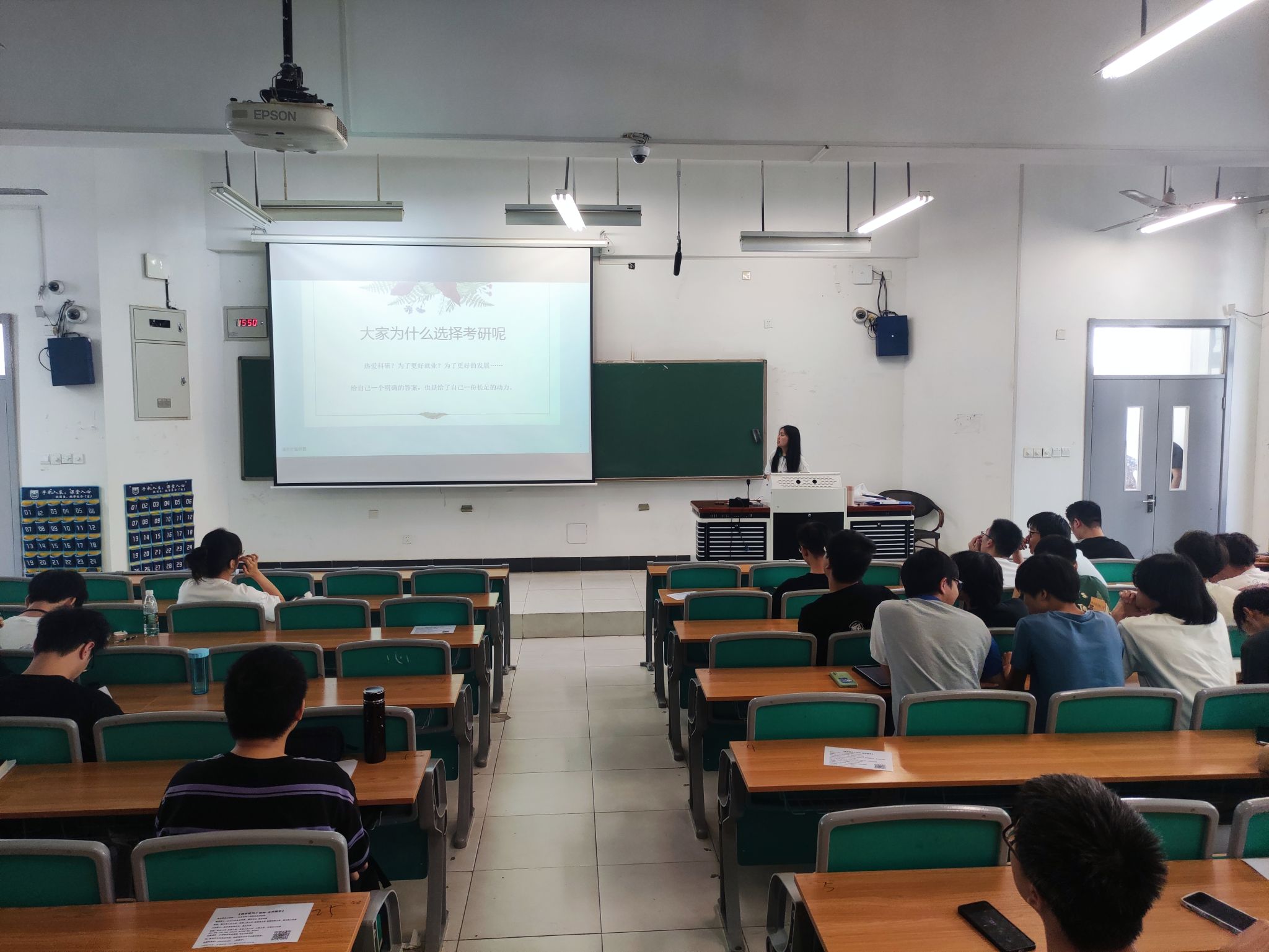 已被南京大学、南京航空航天大学、太阳成集团tyc等公司录取的本科生徐李辛、邓玉雪和张驰分别结合自己的考研经历分享了选择院校、调适心态、笔试和复试的经验。现场同学受益匪浅。