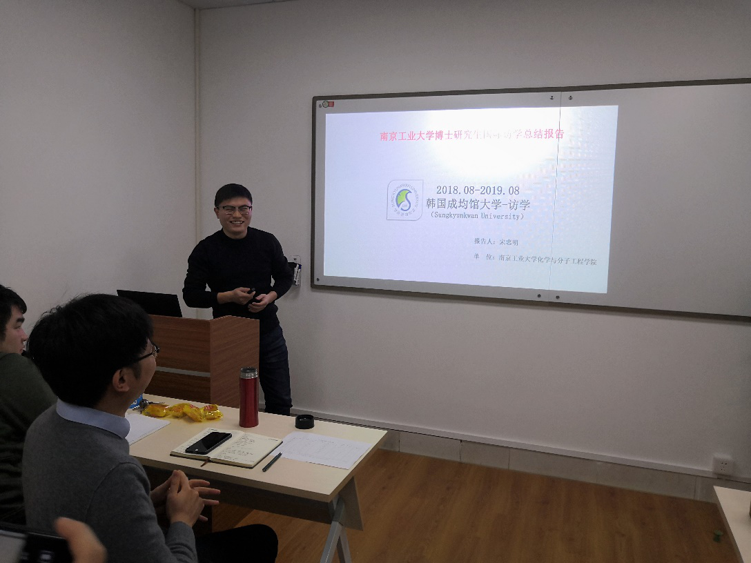 11月30日上午10时左右,太阳成集团tyc研究生国际交流分享报告会于笃行楼304会议室顺利开展,结束韩国成均馆大学博士国际访学的公司博士研究生宋忠明分享了访学申请经验、访学单位情况、访学期间的科研与经历。