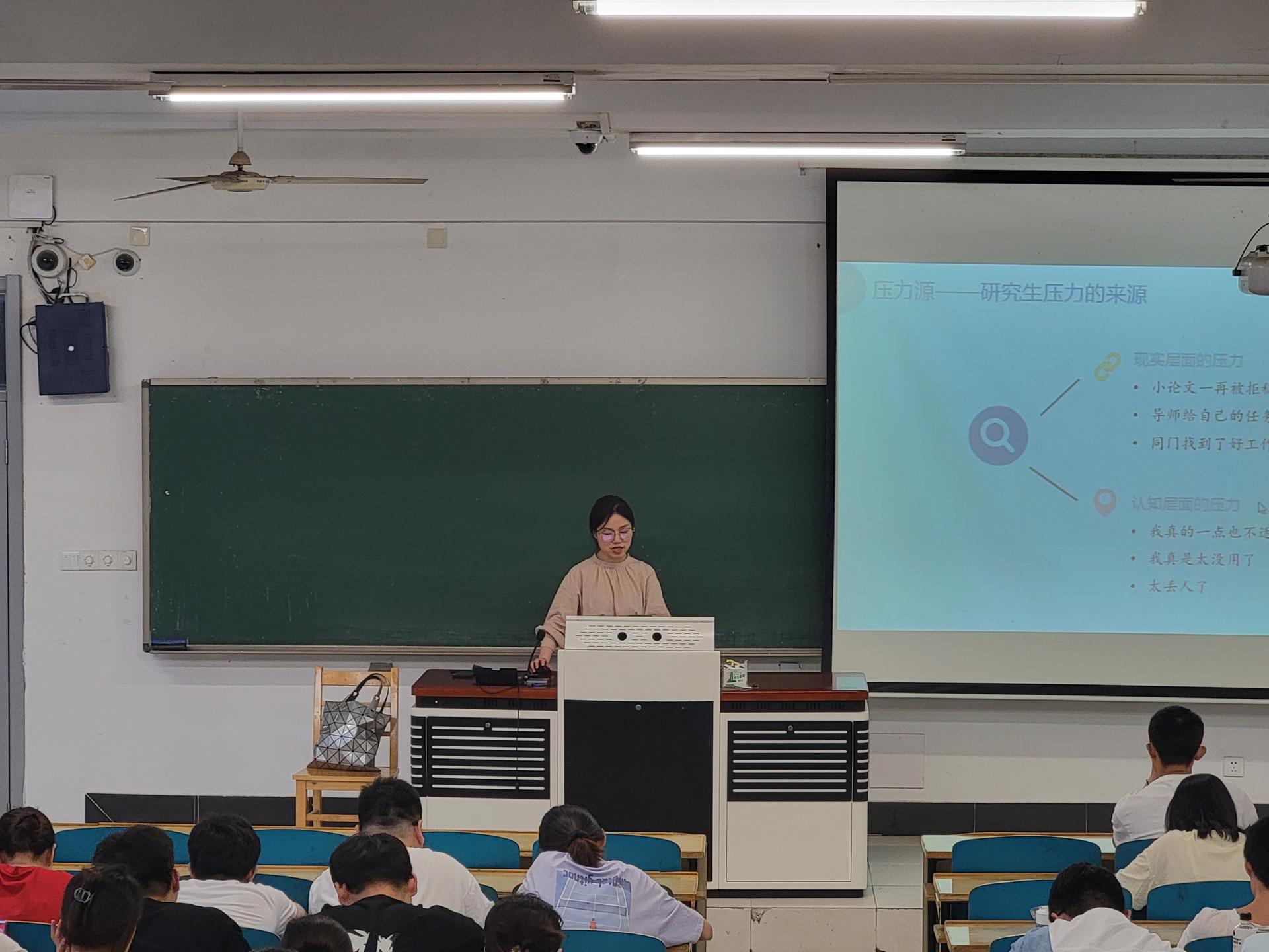 为进一步落实研究生心理健康教育工作,关注研究生身心健康发展,提升研究生自我调节能力,5月30日,公司在厚学109教室举办了“与压力共处,掌握解压密码”主题心理讲座。本次活动邀请了校心理健康指导中心的王亚琴老师为主讲人,公司2021级、2020级研究生参与了本次活动。