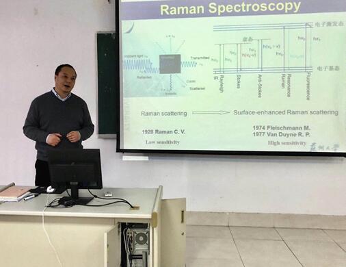1月17日下午,苏州大学材化部姚建林教授应邀来访公司,为大家做了一场题为“表面增强拉曼光谱与高灵敏度传感:策略与应用”的精彩报告。报告中,姚教授介绍了拉曼光谱及表面增强拉曼光谱,讲解了表面增强拉曼光谱基底的制备,包括大小、形状、功能、及“热点”的精准控制,又介绍了表面增强拉曼光谱应用,包括基于等离子体基元构建传感器、活体指纹残留化学物质的鉴定、表面等离激元催化表面偶联反应及监测,同时向大家介绍了相关研究成果和结论,并对拉曼光谱的应用前景进行了展望。
