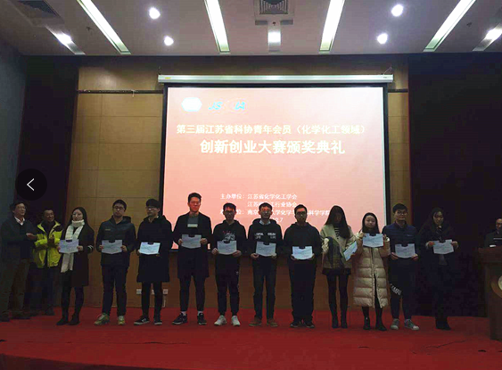 2018年12月7日,第三届江苏省科协青年会员创新创业大赛苏颁奖典礼在南京师范大学举行。公司朱红军、刘睿老师指导的苏欢、汪佳、陆佳鹏三个研究生团队在第三届江苏省科协青年会员创新创业大赛上喜获一等奖三项。