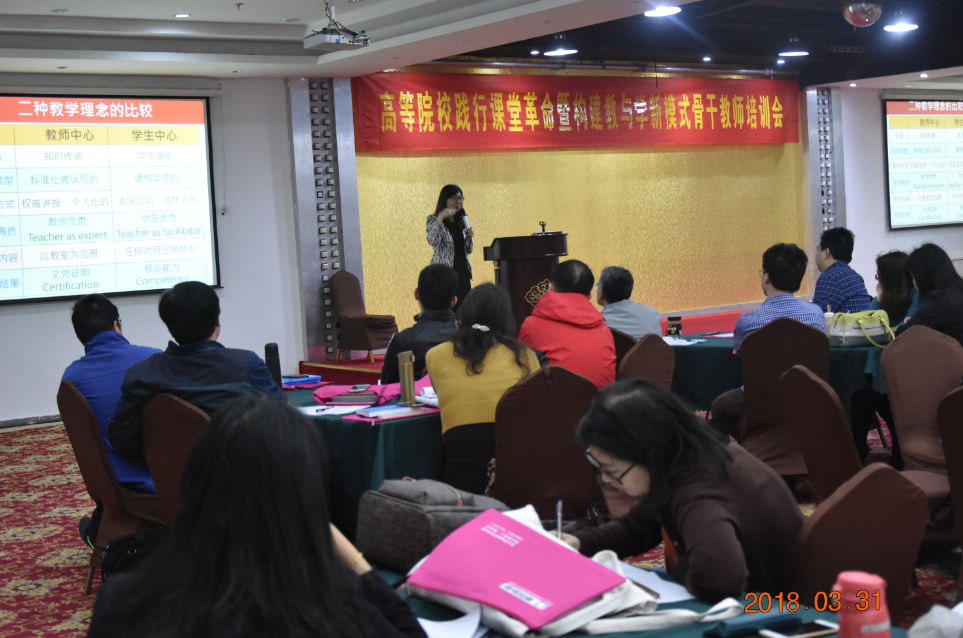 为提高公司青年骨干教师应用型本科公司产品技能,转变青年教师的教学观念、推进教学方法和教学内容改革,2018年3月31日至4月1日,太阳成集团tyc积极响应校教学事务部号召,组织十名骨干教师参加了师培联盟教育科技研究院在南京举办的高等院校践行课堂革命暨构建教与学新模式骨干教师培训会。