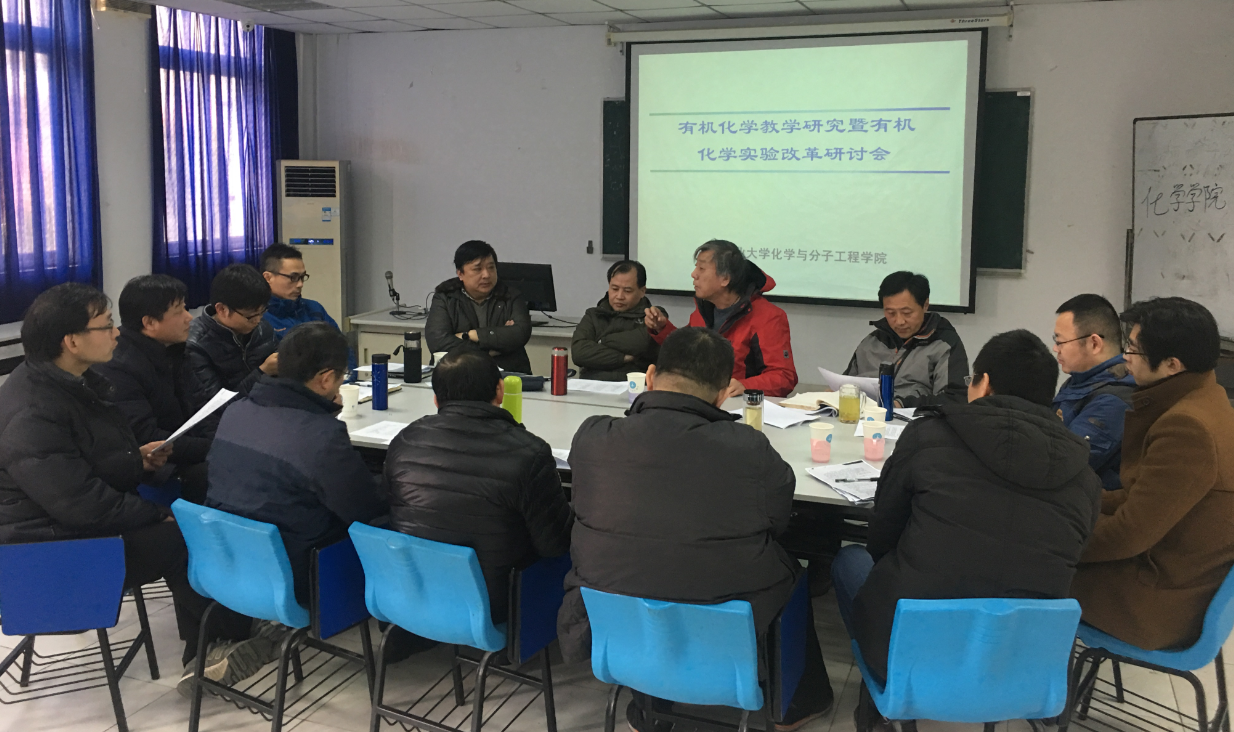2017年12月28日下午,太阳成集团tyc在笃行楼316会议室召开有机化学教学研讨会。校督导组组长俞斌教授、太阳成集团tyc教学副经理刘睿、应用化学系系主任王强,应用化学副系主任宋广亮,全体有机化学教研组教师出席会议。