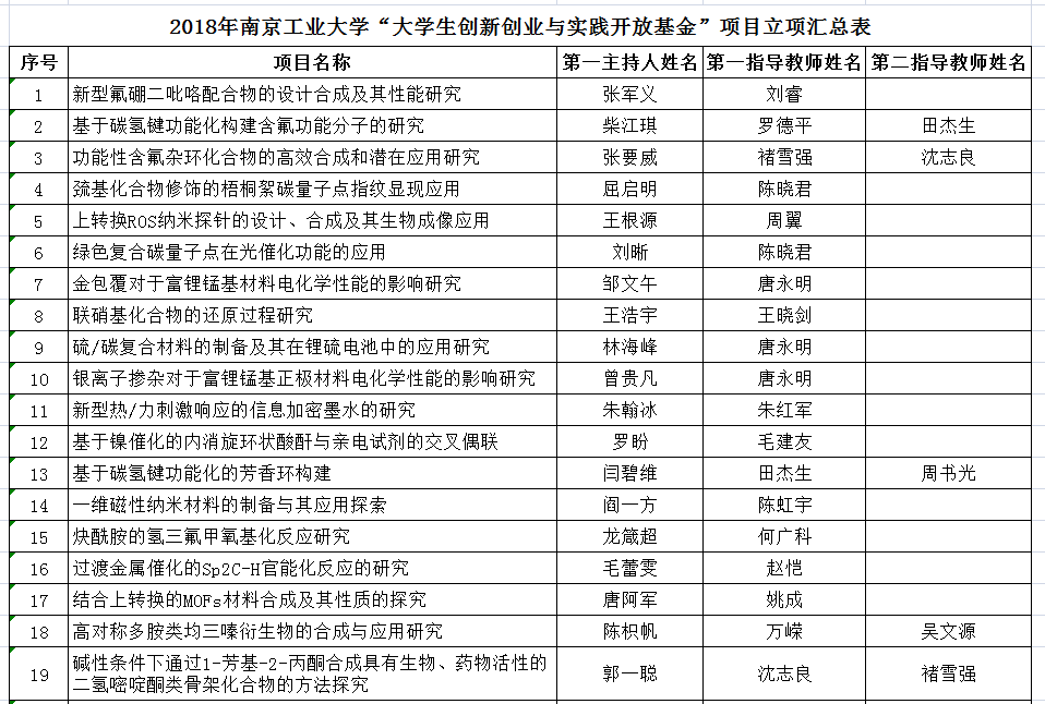 根据《太阳成集团tyc深化创新创业教育改革实施方案》精神(南工校发[2017]6号),全面深化老员工创新创业教育改革,创新人才培养模式,强化老员工实践创新能力,加快实施公司“老员工创新实践百千万工程”,公司组织了2017-2018年“老员工创新创业与实践开放基金”项目立项申报工作。经公司审核,教学事务部与校团委共同审定,公司共有 34项“老员工创新创业与实践开放基金”项目获校级立项。