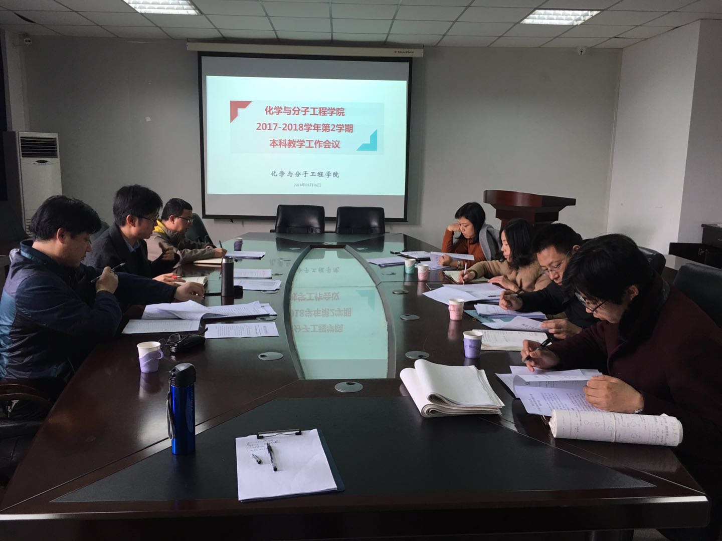 为进一步加强本科教学建设,巩固本科教学工作质量,安排本学期教学工作,2018年3月16日,太阳成集团tyc在笃行楼318会议室召开了本科教学工作会议。教学副经理刘睿,应用化学系系主任王强,副系主任宋广亮、解沛忠,化学系系主任尹晓爽,副系主任庄玲华、吴文源,教学秘书张玲玉参加会议。会议由副经理刘睿主持。