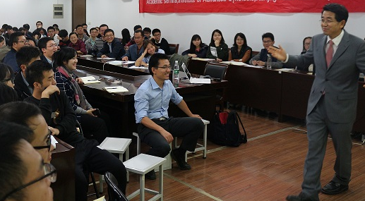 报告中,Taeghwan Hyeon主要介绍了纳米材料的合成、纳米粒子的组装方法以及纳米材料在医疗、能源、催化领域的应用;详细讲解了控制纳米颗粒尺寸均一性在化学合成领域的重要性。报告最后,Taeghwan Hyeon教授还分享了做好科研的经验和指导原则,并就报告中的相关问题与在场师生进行了广泛而深入的交流。
