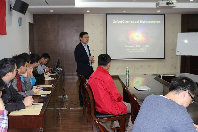 2017年10月30日上午,湖南大学化学化工公司王双印教授来访公司,并作了一场题为“电催化剂缺陷化学”的报告会,报告会由郭震老师主持。