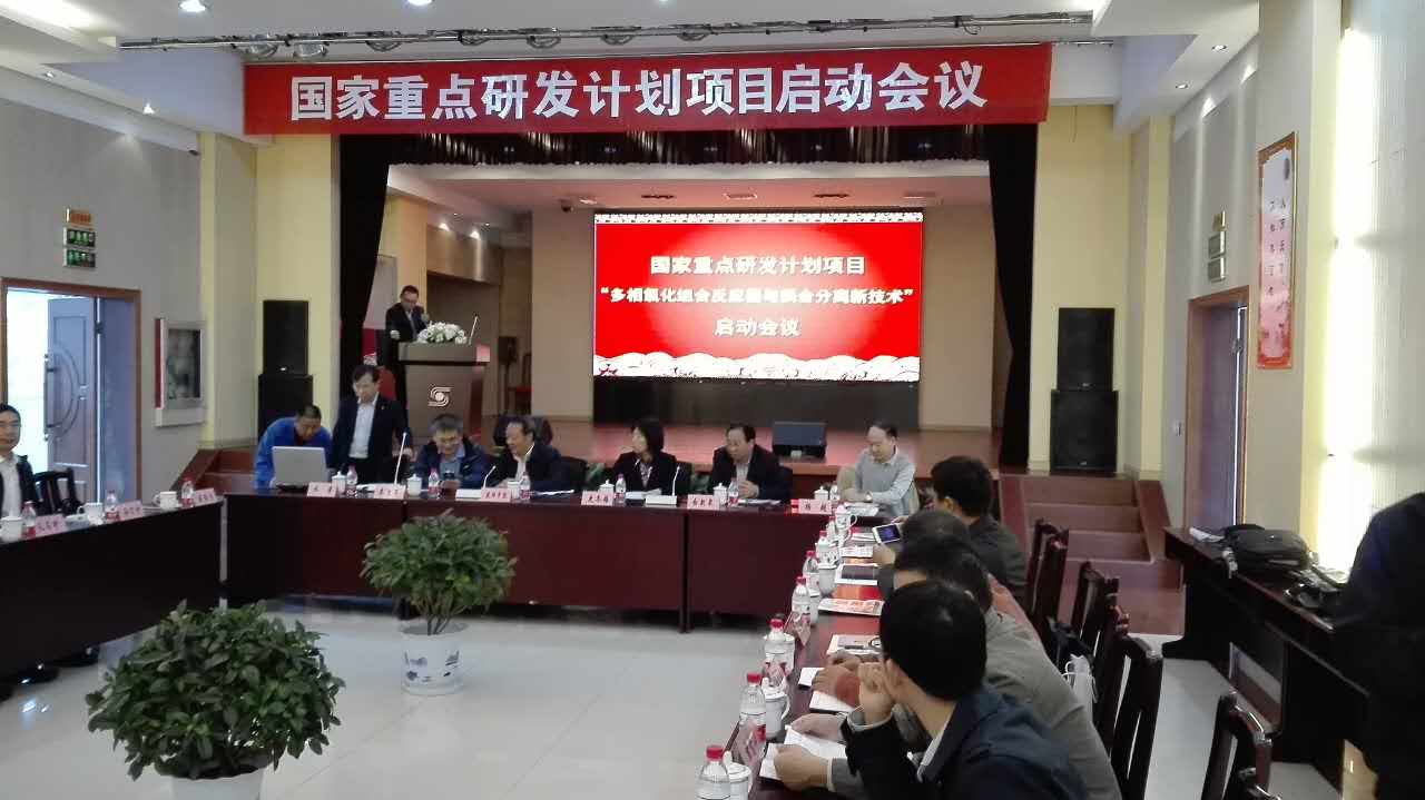 2016年10月13日,国家重点研发计划项目“多相氧化组合反应器与耦合分离新技术”启动会在江阴江苏怡达化学股份有限公司召开。出席该启动会的嘉宾有科技部高新技术中心材料处史冬梅处长、中国石油和化学联合会科技部李文军处长和江阴市副市长余新泉,以及中国工程院院士欧阳平凯教授、中国石化安全工程研究院孙万付经理、中国石化石油化工科学研究院总工程师宗保宁和中科院过程工程研究所毛在砂研究员等项目顾问专家,承担该项目组的主要成员参加了会议。