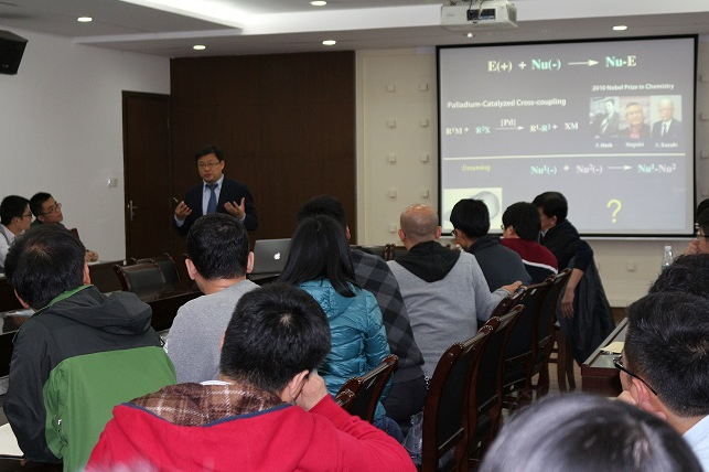 雷教授主要报告的内容集中于氧化耦合,以开发一种新的、有效的两个亲核试剂之间的键形成方法。通过反复实验,已经成功开发了三代氧化偶联。此外,对反应的深入理解是另一个重点。最近,雷教授团队通过操作X射线吸收、拉曼,电子顺磁共振和核磁共振光谱还发现了一系列新的氧化偶联反应机理。