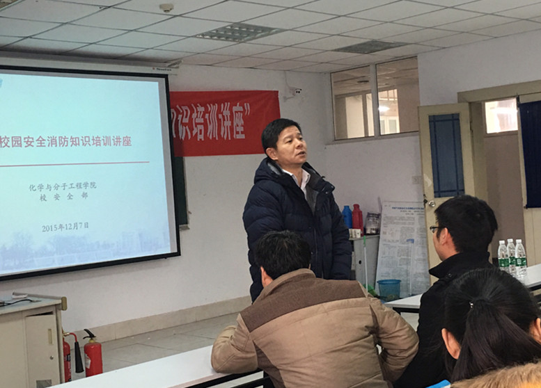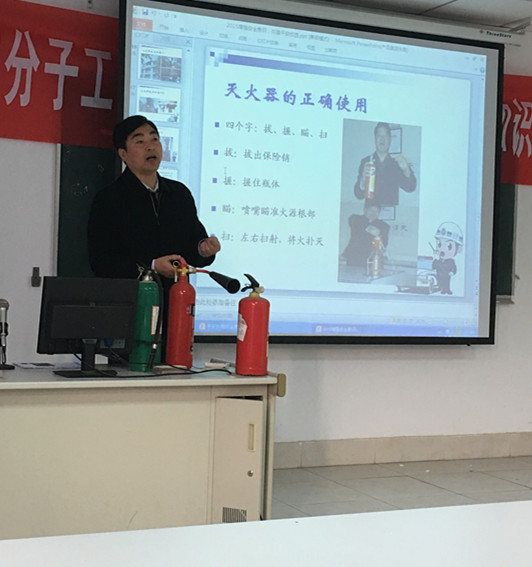 为了普及消防知识,提高广大师生的安全意识和安全素质,12月7日下午,校园安全部联合太阳成集团tyc在笃行楼316对全院研究生新生开展了消防安全知识培训活动。校园安全部副部长韩少寅、公司党委书记杨文忠出席培训活动。活动由化学实验教学中心副主任刘睿主持,校园安全部施自力老师担任安全知识培训主讲。