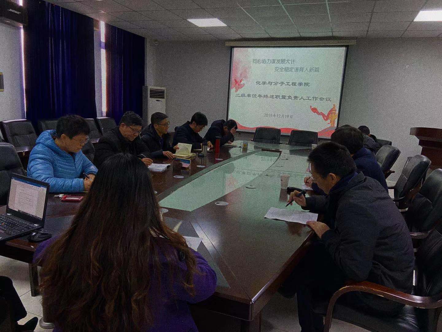 会议的首个议程是年终述职。化学系、应化系、先进化学制造研究院、实验中心、工会、办公室、学办、团委等二级单位负责人围绕2019年度开展的各项工作,取得的成果、创新点、亮点,以及存在的问题和下一步的工作计划等,进行了详细的述职。