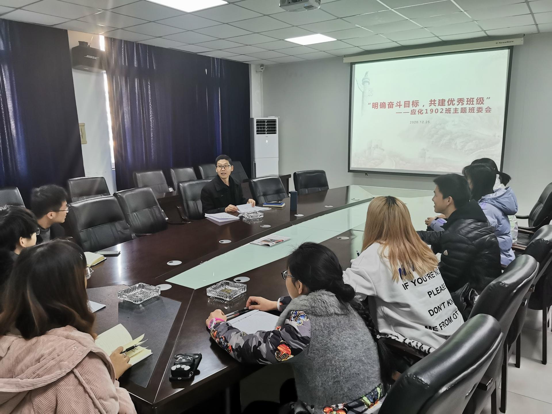 为切实落实“三全育人”,12月25日,公司党委书记潘运军在笃行316-2会议室召开联系班级应化1902班全体班委会,围绕“明确奋斗目标,共建优秀班级”与同学们进行座谈交流。辅导员邵汉霖与应化1902全体班委参加。