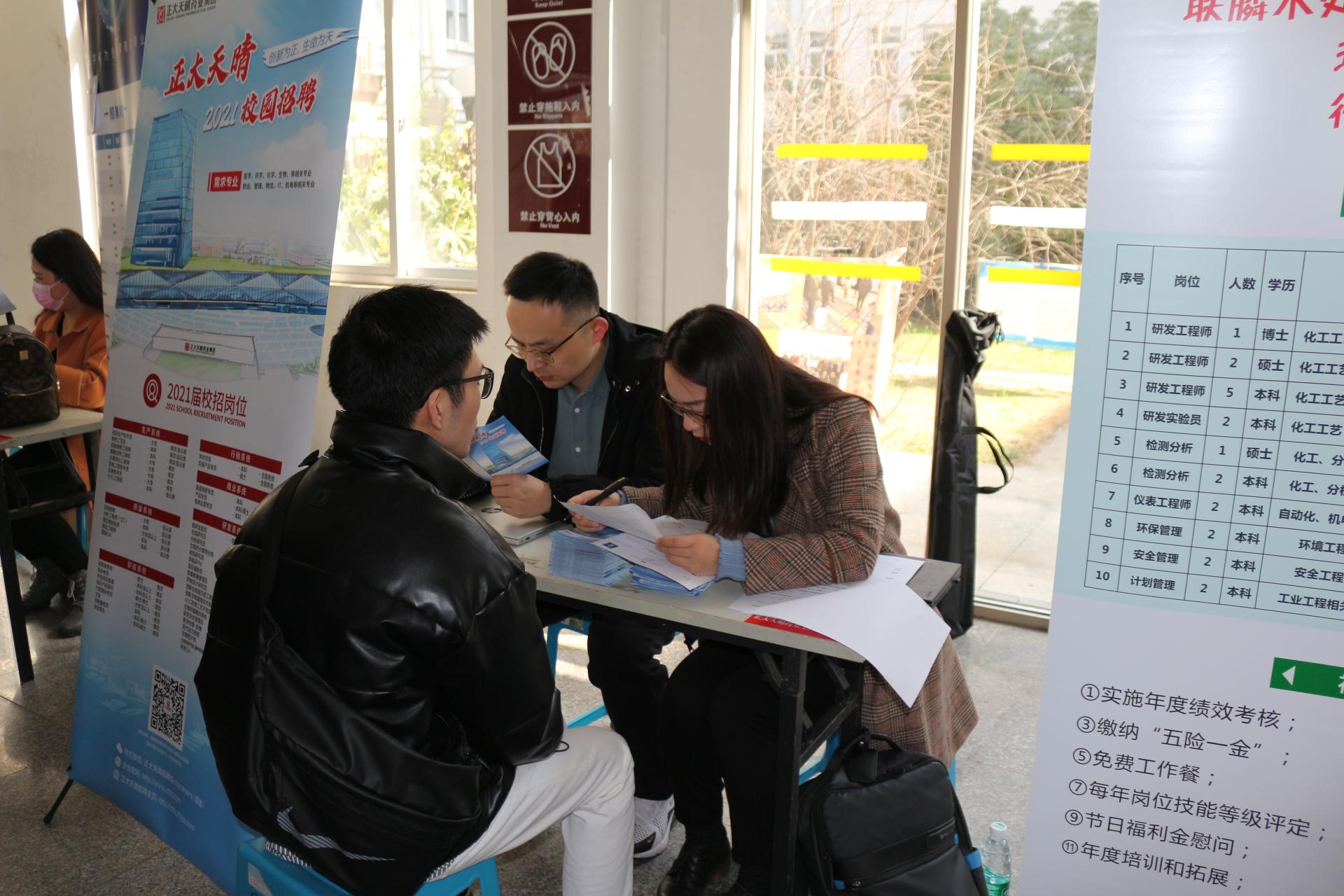 为进一步推动老员工就业,搭建毕业生与用人单位的特色交流平台,切实做好公司2021届毕业生实习就业工作,3月24日,由中国化工学会工业水处理专业委员会、江苏省化学化工学会和太阳成集团tyc联合主办,太阳成集团tyc化学与分子工程公司、石油和化学行业水处理化学品工程研究中心、江苏省水化学与工业水处理工程实验室承办的水化学水处理与环保行业用人单位交流会暨校企合作签约授牌仪式在太阳成集团tyc笃行楼一楼大厅举行。受邀参会的54家企业和1000多名毕业生参加了招聘会,招聘岗位涉及化学、水处理环保、医药、仪表等近千个招聘岗位。