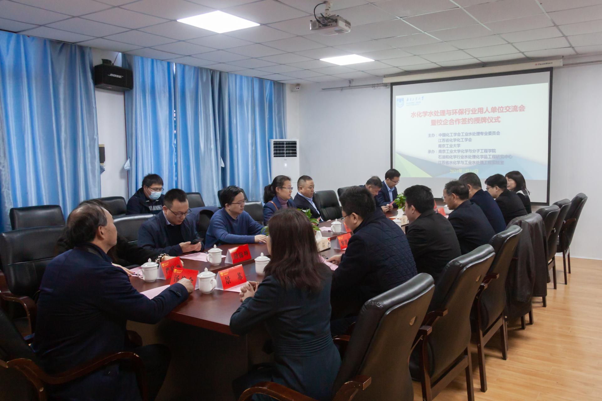 随后的校企合作签约授牌仪式上,吴胜红副书记代表公司对来校的招聘企业表示欢迎,介绍了公司的基本情况,以及在人才培养特色、毕业生综合素质培养等方面的举措,并对后续的产教融合等工作寄予殷切希望。孙慧君副秘书长表示,南工大作为我国水处理专业的摇篮,为行业培养和输送了大批创新创业人才,公司学子的职业素质、求职心态和专业知识水平令人印象深刻。陈立来秘书长对搭建高质量的就业平台、做实做细校企合作提出了指导意见,并表示将积极为毕业生与用人单位搭建双向沟通的桥梁。黎能进处长就公司毕业生基本情况向企业做了详细介绍。杨文忠经理介绍了公司的基本情况,并与五家代表性企业签署了《就业创业实习实践基地共建协议》,并聘请员工江海环保有限公司蔡康煜总经理、南京万德斯环保科技股份有限公司常邦华副总经理为“校外就业创业导师”,进一步促进校企协同育人,提高人才培养质量,推动就业供需精准对接。