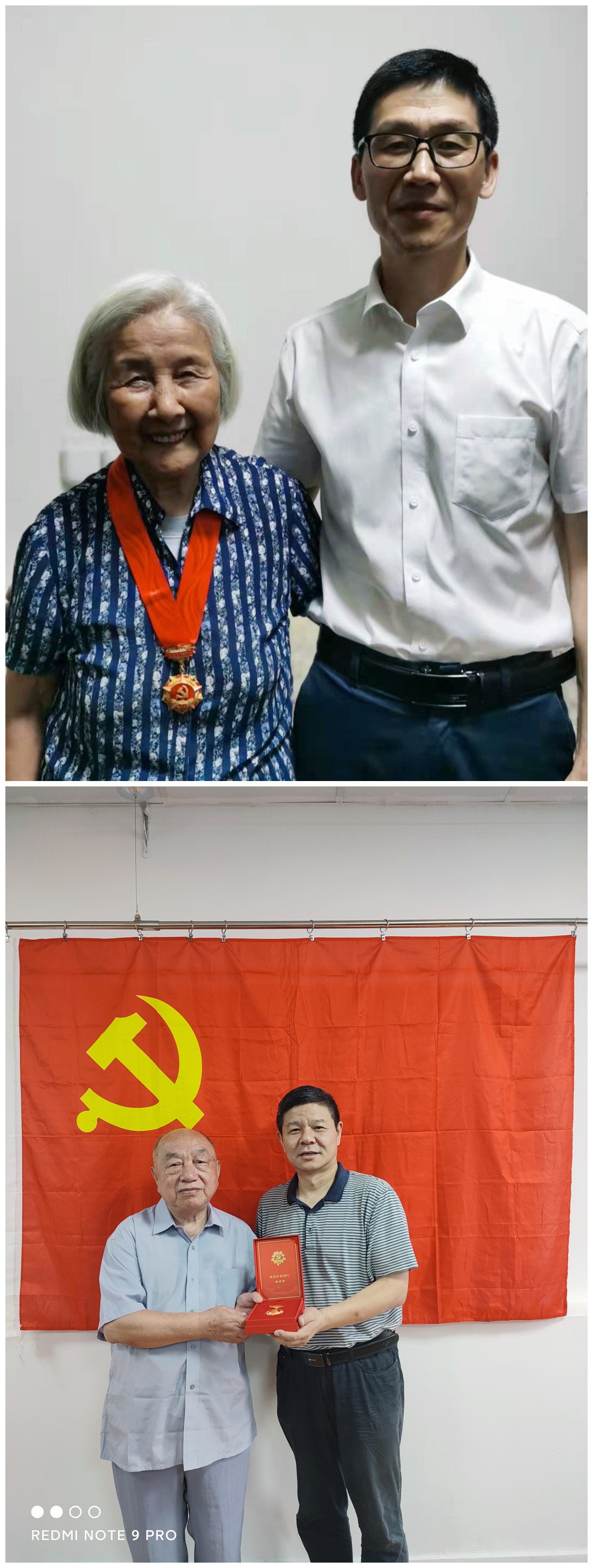 “光荣在党50年”纪念章是党中央2021年首次颁发的纪念章,也是中国共产党成立100周年庆祝活动的重要组成部分。一枚小小的纪念章,不仅体现了党中央对老党员的关怀,也极大的增强了老党员的荣誉感、归属感、使命感。退休老党员黄仕华教授在党旗下双手接过奖章,连连说道:“感谢党、感谢国家,感谢公司和公司,还想着我们这些老同志……”家有一老,如有一宝。老党员、老教授是党史国史的亲历者,更是公司化学教育事业的先行者、“活教材”。公司领导向他们介绍了公司发展情况,并希望老党员、老教授在青年教师成长等方面继续发挥引领作用,共同推动公司高质量发展。