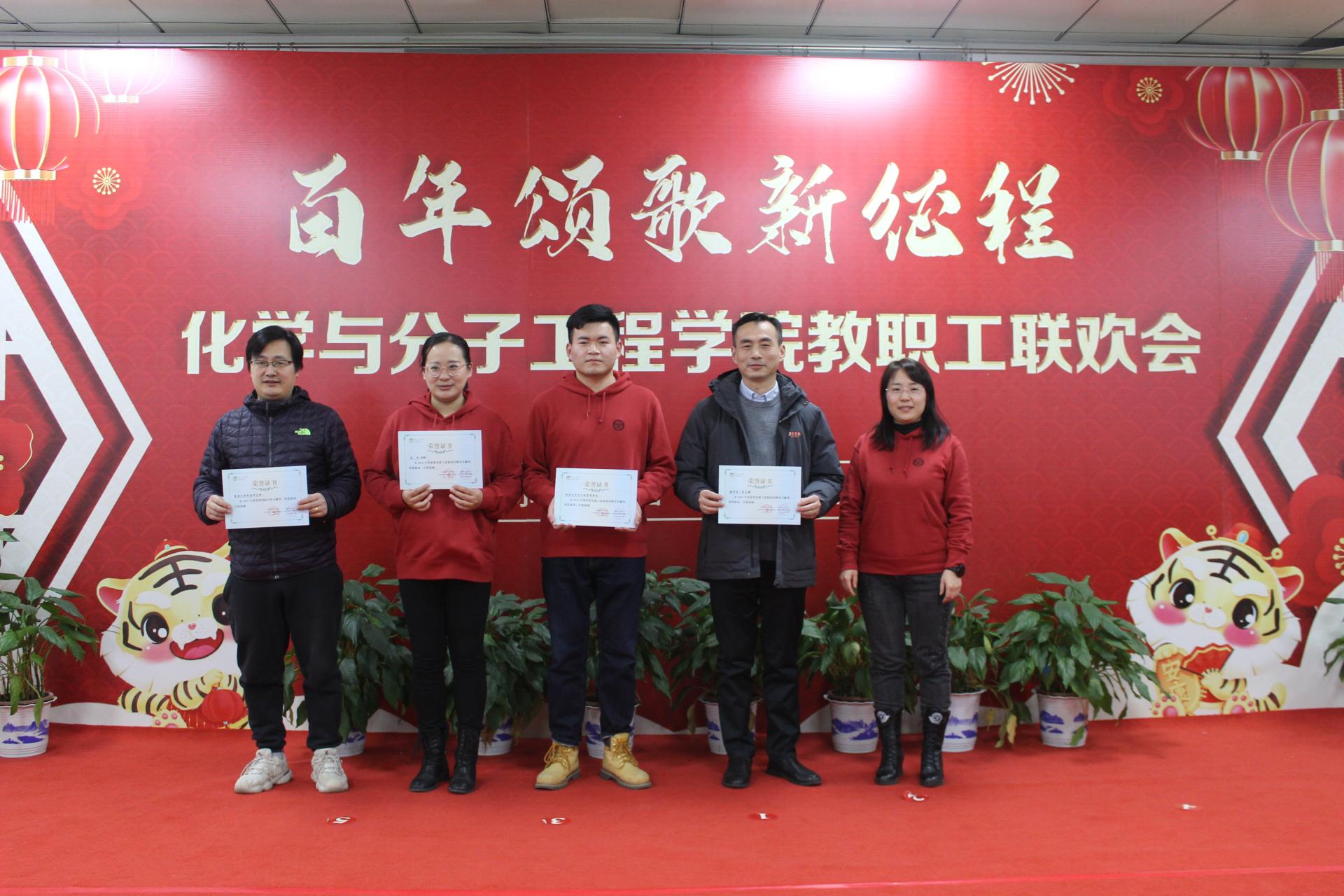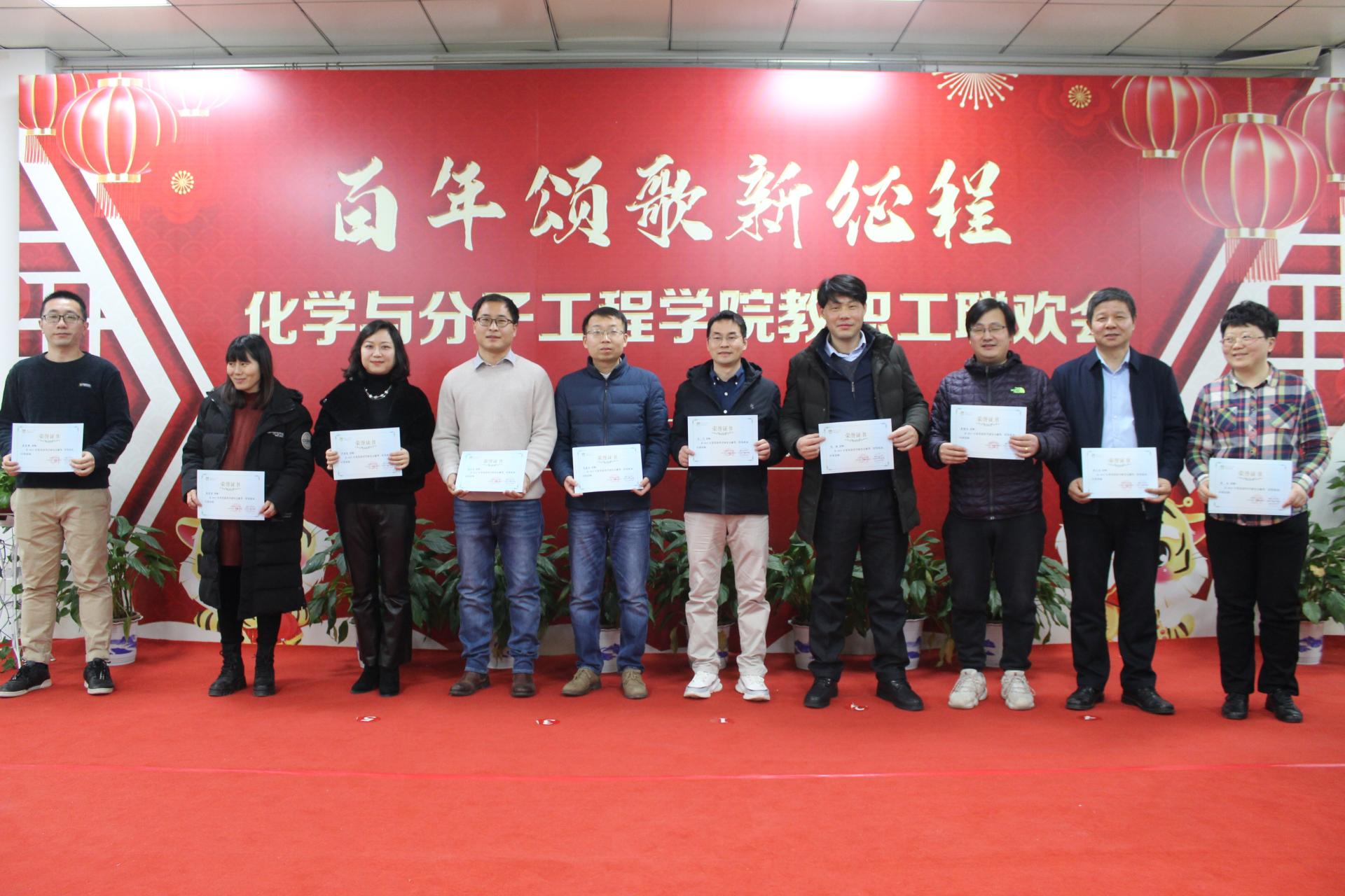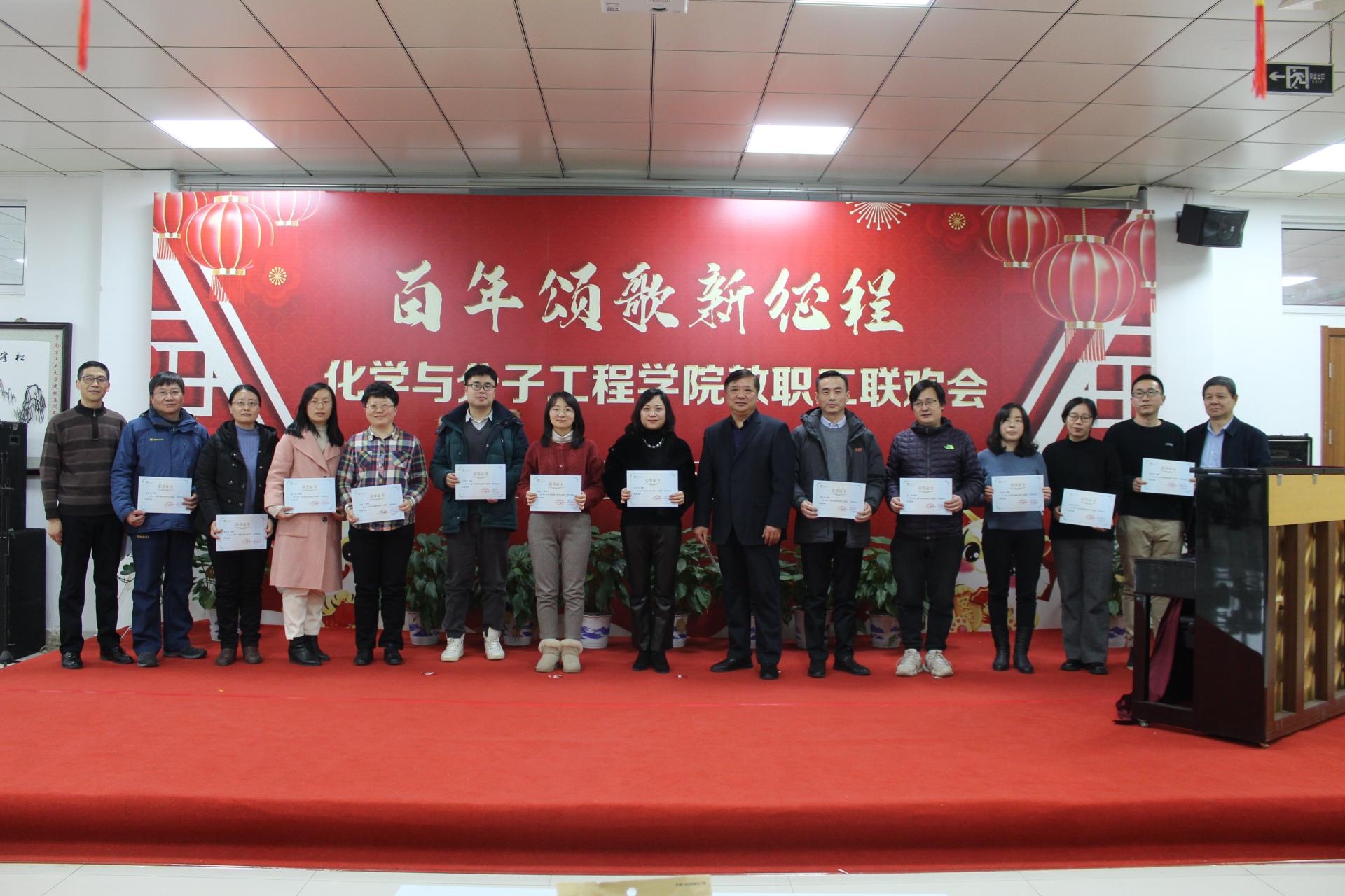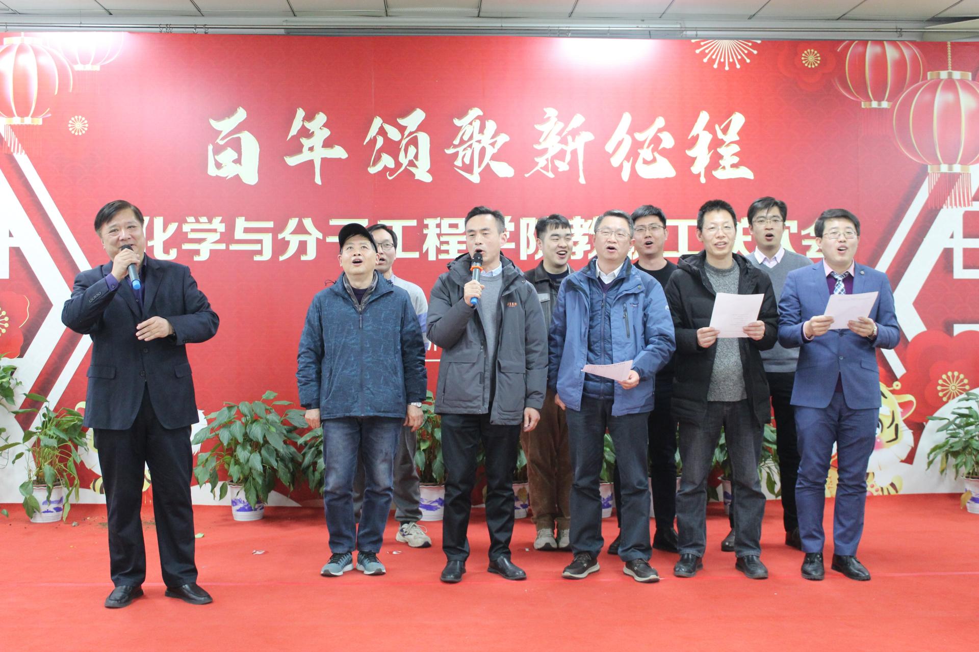 联欢会在无机与分析化学教研室合唱歌曲《明天会更好》中正式拉开帷幕。随后,院办配音秀《疯狂动物城》、综合化学教研室小人舞《欢欢喜喜迎新年》、学办团舞《爱》、先化院合唱歌曲《未来之光》、实验教学中心诗朗诵《我骄傲·我是中国人》以及物理化学教研室诗朗诵《我的祖国》等为大家带来了一出出精彩纷呈的舞台表演。节目中穿插的抽奖环节以及趣味小游戏更是将现场气氛一波波推向高潮。最后,联欢会在有机化学教研室荡气回肠的《酒神曲》中圆满落幕。