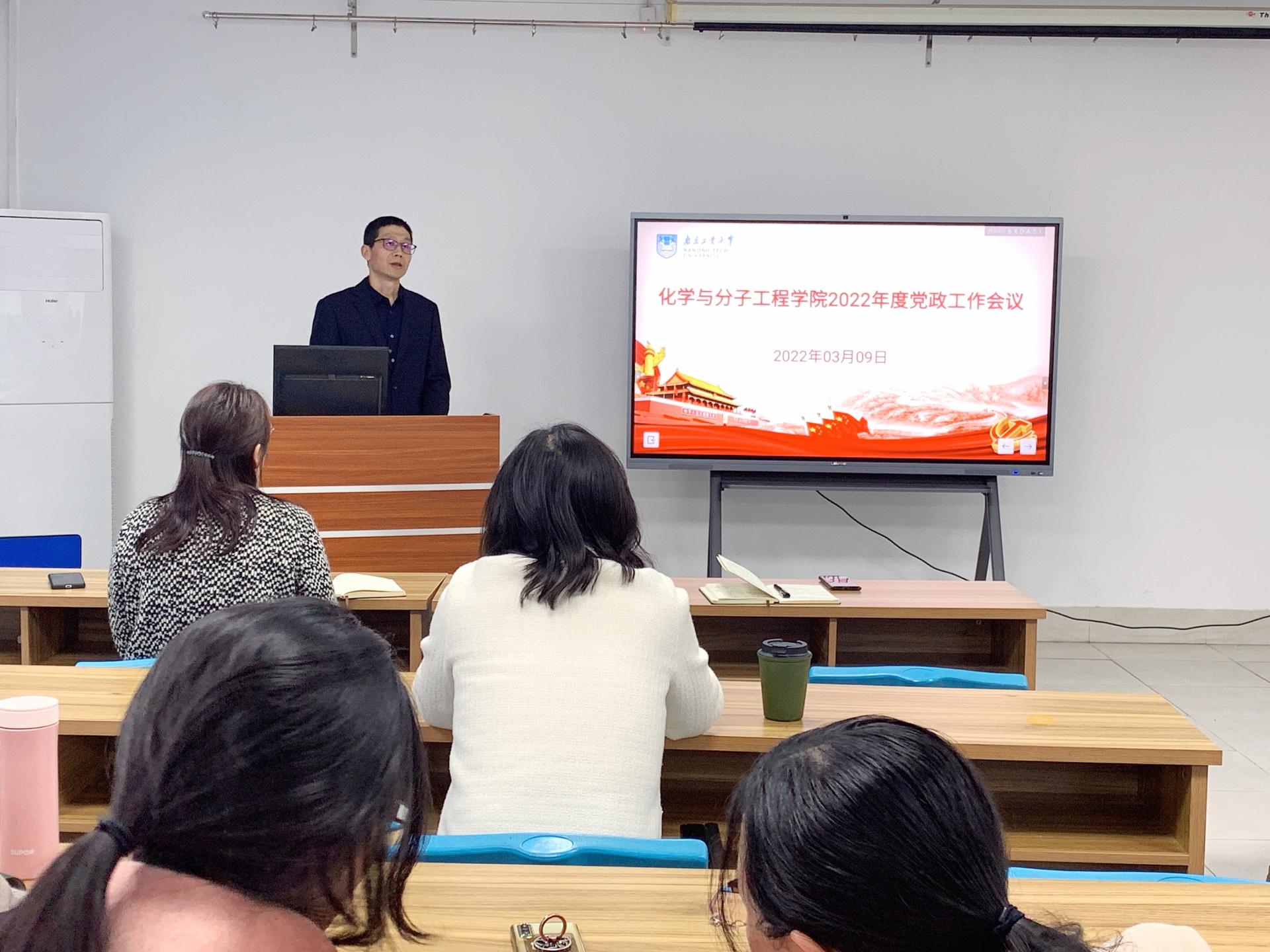 潘运军书记总结了2021年党建工作所采取的举措和取得的成绩,分析了公司党建工作面临的新形势新要求,明确了2022年公司党建工作任务和要求:1.加强党的领导,提升党政共同负责制效度,确保党组织领导和运行机制到位;2. 加强政治建设,提升意识形态工作敏感度,确保政治把关到位从;3. 加强思想政治教育,提升立德树人根本任务执行度,确保思想政治工作到位;4. 加强党建工作创新,提升党组织作用覆盖度,确保执行基层组织制度到位;5. 加强政治引领和作用发挥,提升党建和事业发展融合度,确保推动改革发展到位。潘运军书记要求全体党员、干部以奋发进取的姿态、攻坚克难的势态、真抓实干的状态,主动思考,勇于担当,积极作为,奋力夺取公司事业发展新胜利。