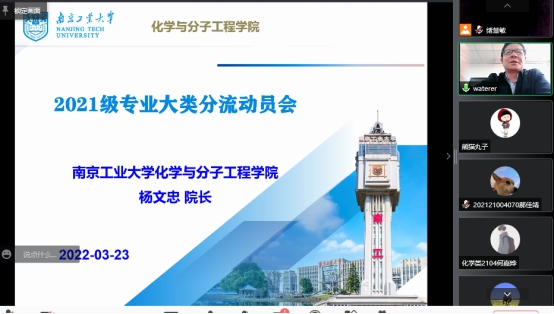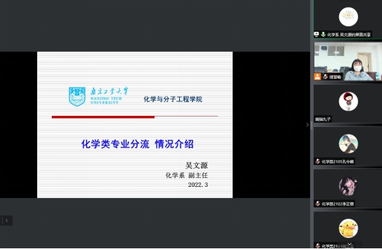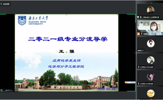 为推动2021级本科生大类分流工作,3月23日下午,公司举行线上“2021级本科生大类培养专业分流”导学动员会。经理杨文忠、副书记王丽娟、应用化学系主任王强、化学系副主任吴文源等分别为全体2021级本科生作专业分流导学。