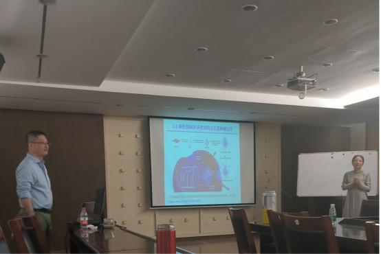 雷建平教授与大家分享了其团队近5年来在生物分析领域的重要进展,着重介绍了MOF、COF和HOF等框架材料作为新型电致化学发光探针的研究成果。在互动环节,雷建平教授与公司师生就框架材料的构效关系、电子转移机制、肿瘤的光动力治疗以及生物酶组装策略等展开了深入探讨。