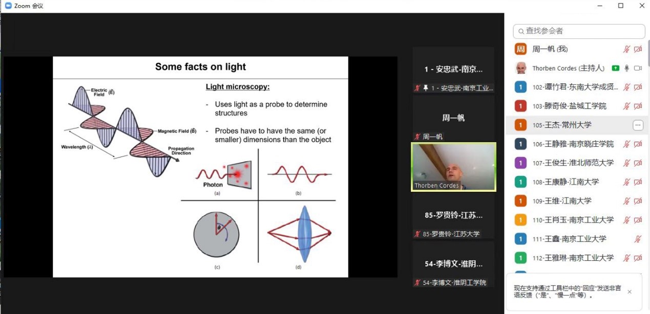 7月22日至23日,“化梦为翼”暑期公司进行了“化员工物学的分子基础与技术”专题的讲授与学习。德国慕尼黑大学Thorben Cordes教授以“Methods in biophysical chemistry: Optical imaging”为主题进行了全英文在线直播授课,详细讲解了高分辨荧光成像技术原理和应用。王晓剑教授着重讲解了生物正交反应与“点击化学”及其用于生物大分子修饰。