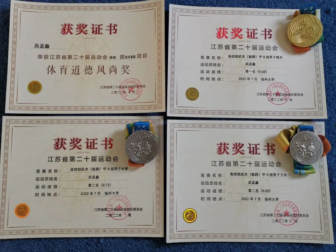 7月29日至8月1日,由江苏省教育厅和江苏省体育局联合主办的江苏省第二十届运动会高校部武术(套路)比赛在扬州市荷花池体育馆举行。经过四天五场紧张激烈的赛程,校武术队选手、公司应化2004班吴孟鑫同学在甲B组男子棍术、长拳和刀术三个项目中分别获得第一名、第二名、第二名的优异成绩,并荣获“体育道德风尚奖”。其所在团体以总分121分位列甲B组第一名,这是公司武术队继第十八届、十九届省运会之后又一次获得团体冠军,实现“三连冠”。