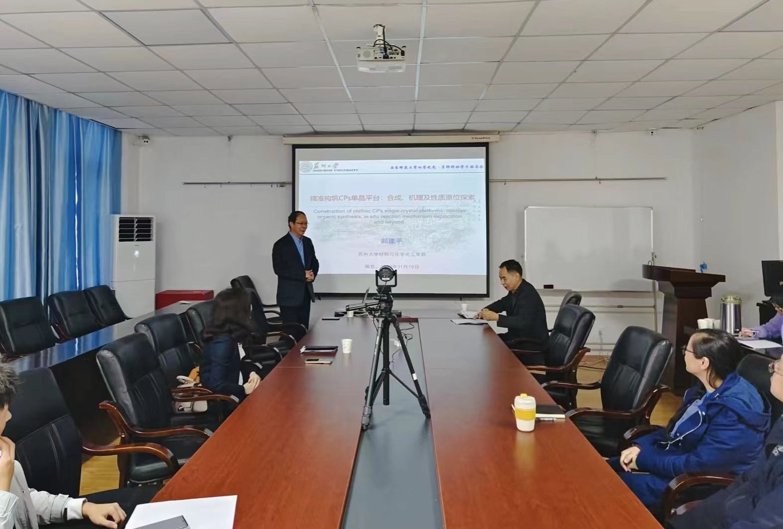 近日,公司特邀国家级人才苏州大学郎建平教授、南京大学段春迎教授做客“化学之光·名师讲坛”,他们为听众分别作了“精准构筑CPs单晶平台:合成、机理和性质原位探索”“金属-有机限域空间的可控构筑与光催化性能”主题报告。讲坛由白俊峰教授主持。
