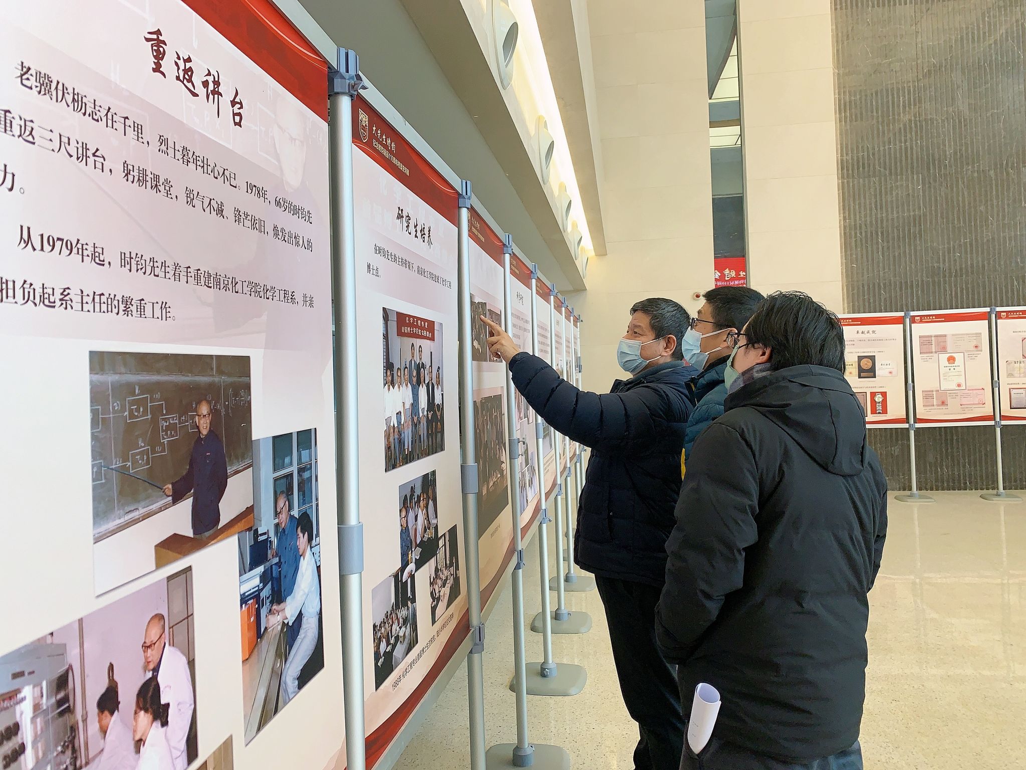 时钧先生是我国水泥专业、化学工程专业创导者和开拓者之一,化工高等教育一代宗师,著名化学工程学家,中国科公司院士,先后当选为“新中国成立以来感动江苏人物”、“江苏高等教育30年重要影响人物”。中心组成员认真观看时钧先生手写的讲义、课程建设意见、实验记录本以及历年所获的奖状、证书、聘书、纪念章,各个历史时期的照片、文书档案等,从中感受着时钧先生热爱祖国、热爱党、热爱教育事业、热爱员工的先进事迹,体会着“忠党爱国、淡泊坚韧、求实惟先、扶掖后学”时钧精神的深刻内涵和重要意义。