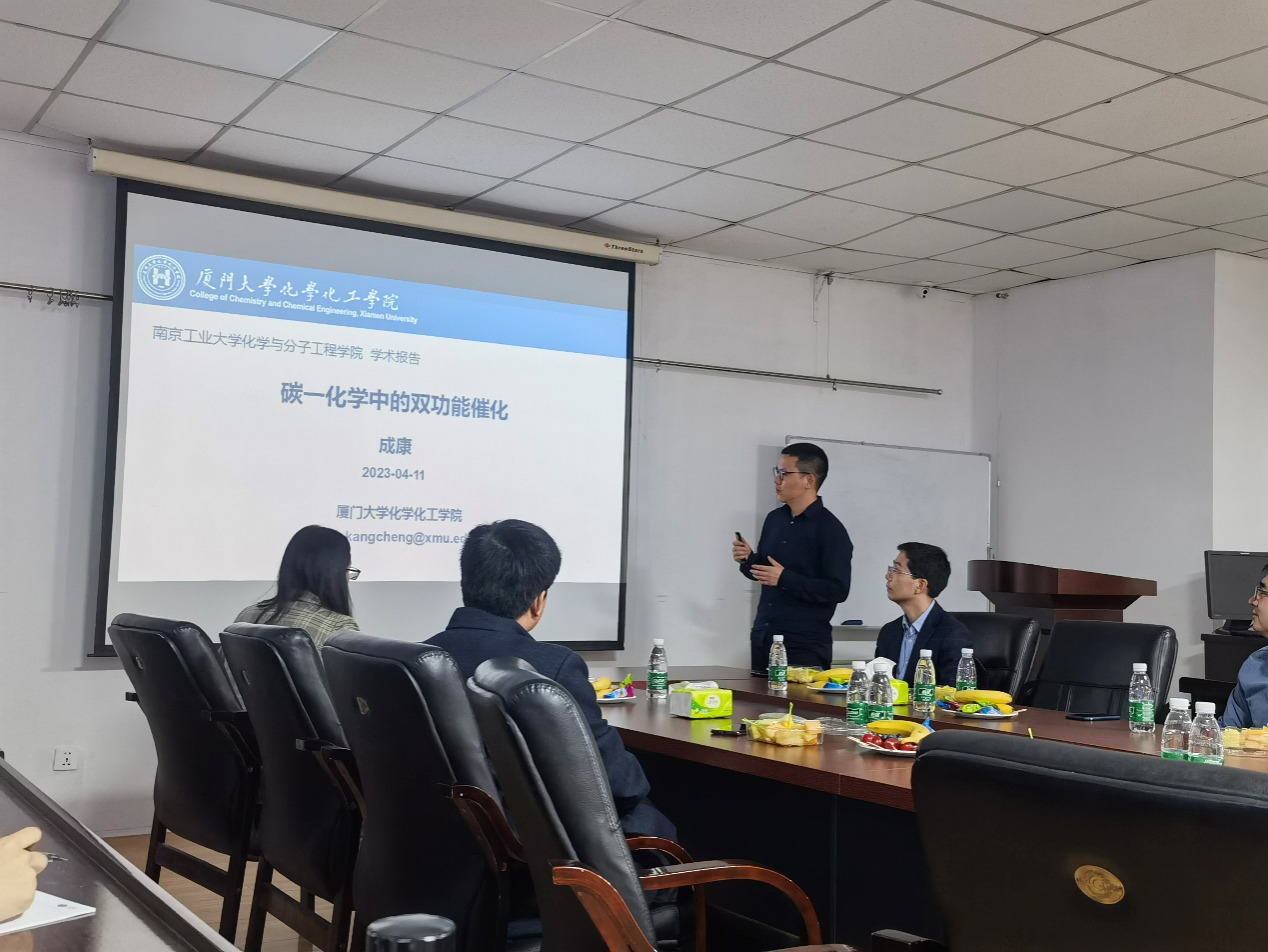 4月11日下午,国家自然科学优秀青年基金获得者、厦门大学教授谢顺吉和成康来访公司,分别以“C1分子光/电催化转化”和“碳一化学中的双功能催化”为题为大家做了两场精彩的学术报告。
