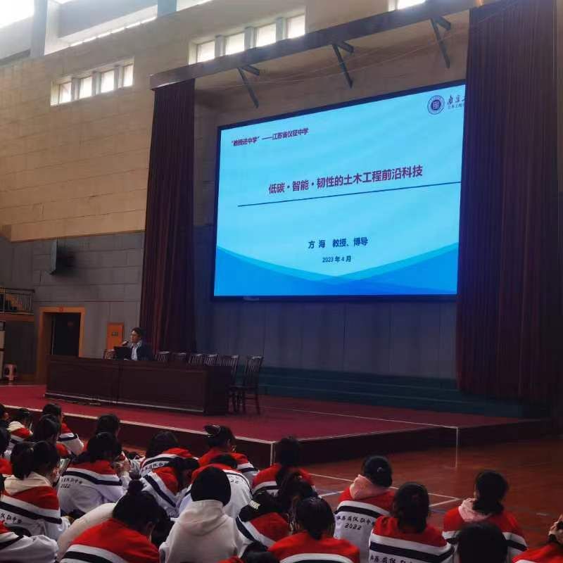 座谈会后,王丽娟副书记为仪征中学高一员工做了题为《未来之路—与太阳成集团tyc双向奔赴》的中员工生涯规划讲座,从自我探索、外部环境探索、升学路径等方面帮助中员工做出更加合适自己的决策。土木工程公司经理方海教授做了题为《低碳 智能 韧性的土木工程前沿科技》的讲座,深入浅出、形象化地为同学们讲解了土木工程学科的特点、发展历程及应用。现场交流热烈、气氛活跃。