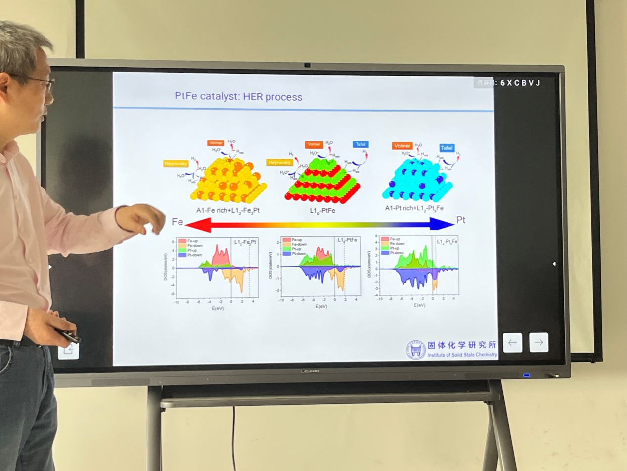 报告会上,邢献然教授与大家分享了其课题组近年来在无机固体纳米晶体结构、局域结构和负热膨胀领域的重要进展,着重介绍了局域结构在电催化HER反应过程和乙炔加氢反应过程的原素分布、化学成键和物质转移中的应用。王泉明教授与大家分享了其课题组近年来在磷、炔、胺等配体保护的金属纳米团簇的合成、结构与催化应用领域的重要进展,着重介绍了调控团簇尺寸、几何结构、电子结构、表面空位、金属配体界面等重要因素的配体工程以及性能优异的金属纳米团簇催化剂的设计。