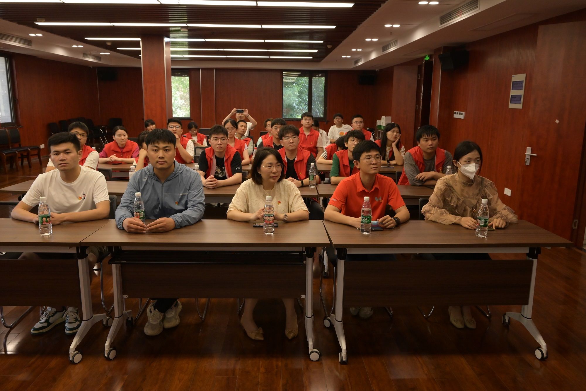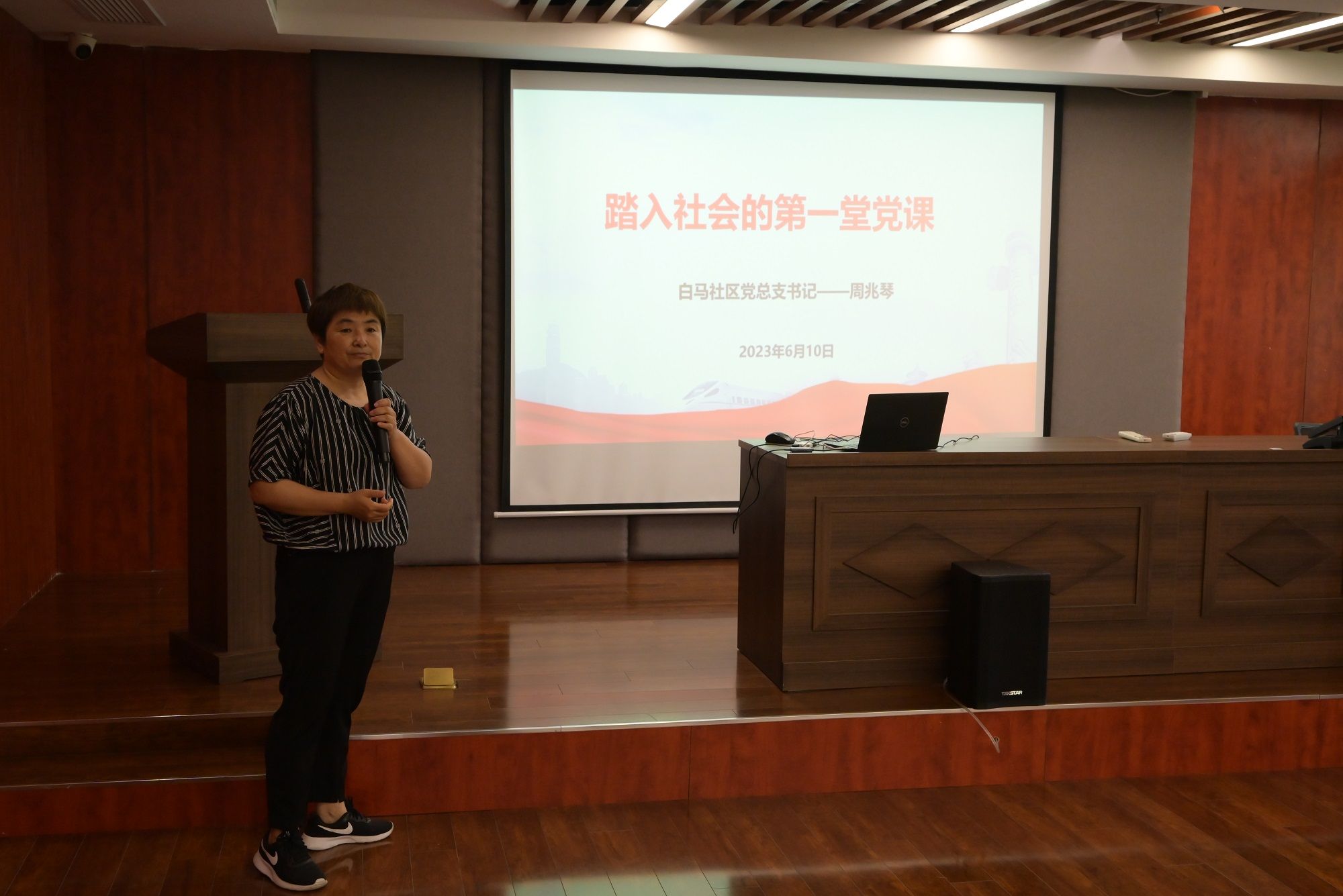 2022年“江苏好人榜”荣誉获得者、社区群众口中的“铁人”、白马社区党总支书记周兆琴受邀为毕业生党员讲授踏入社会的第一课。周书记介绍了白马社区的基本情况以及中国社区治理特点、成效,分享了作为一名社区干部应该具有的工作态度、工作作风、工作能力和素质。最后,她勉励毕业生党员们牢记党的初心使命,将青春之花开在祖国建设一线。