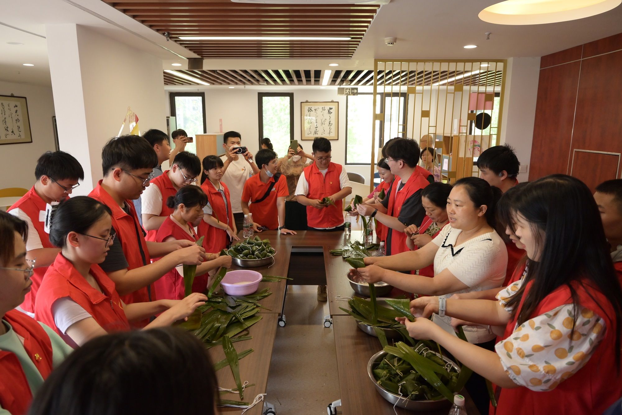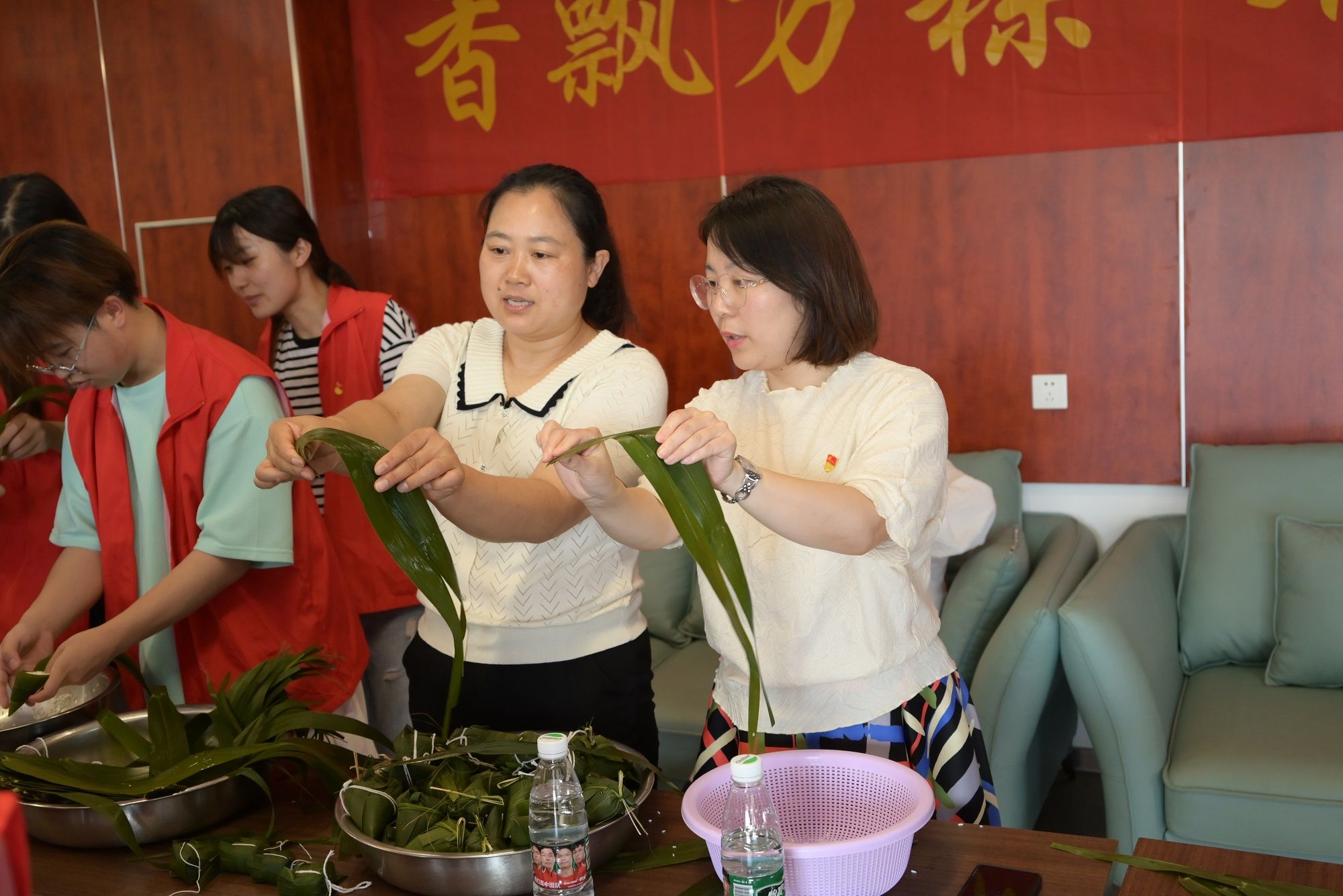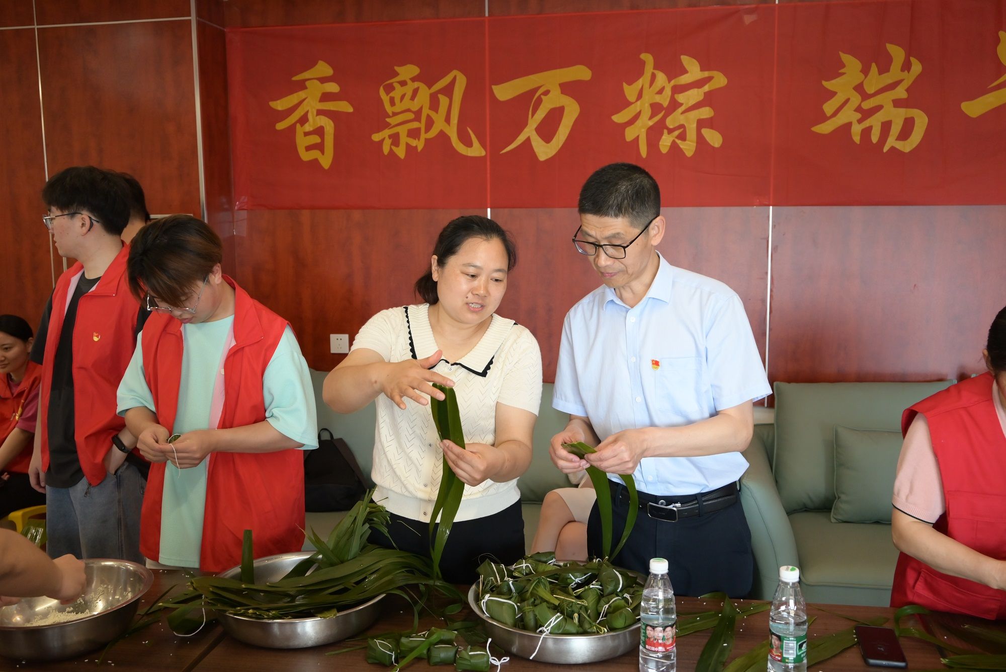 在社区党员志愿者的带领下,员工党员参观了浦口区反“四风”主题动漫馆,接受廉政教育;走进居民小区参与垃圾整治活动;和社区干部一起为孤寡老人开展“香飘万粽 端午传情”包粽子送温暖等活动。