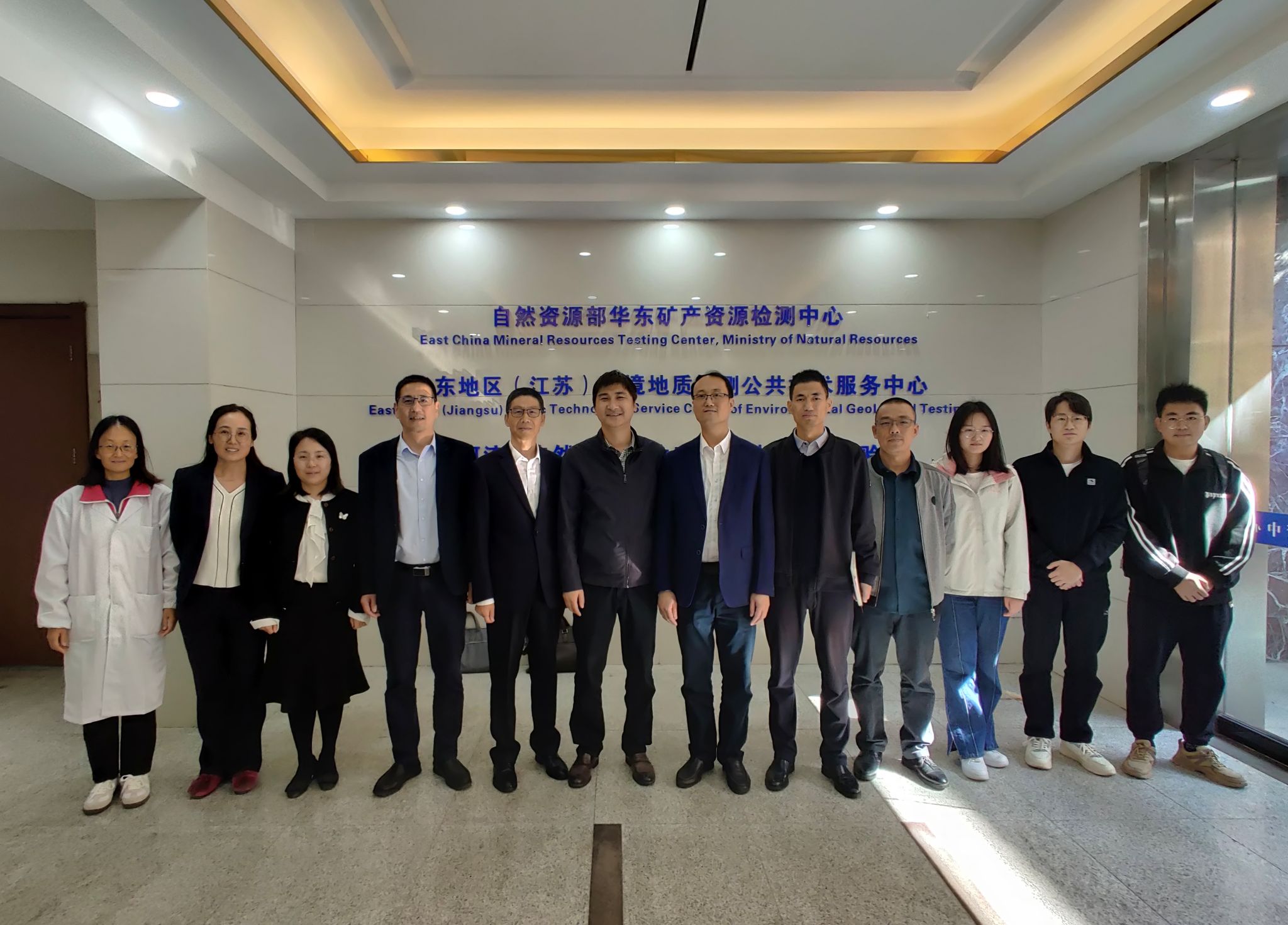 双方围绕学科发展、平台建设、实习就业等领域开展交流。邢光福和刘大卫代表双方单位签订了就业创业实习实践基地协议并举行揭牌仪式。会后,还参观了自然资源部华东矿产资源检测中心。
