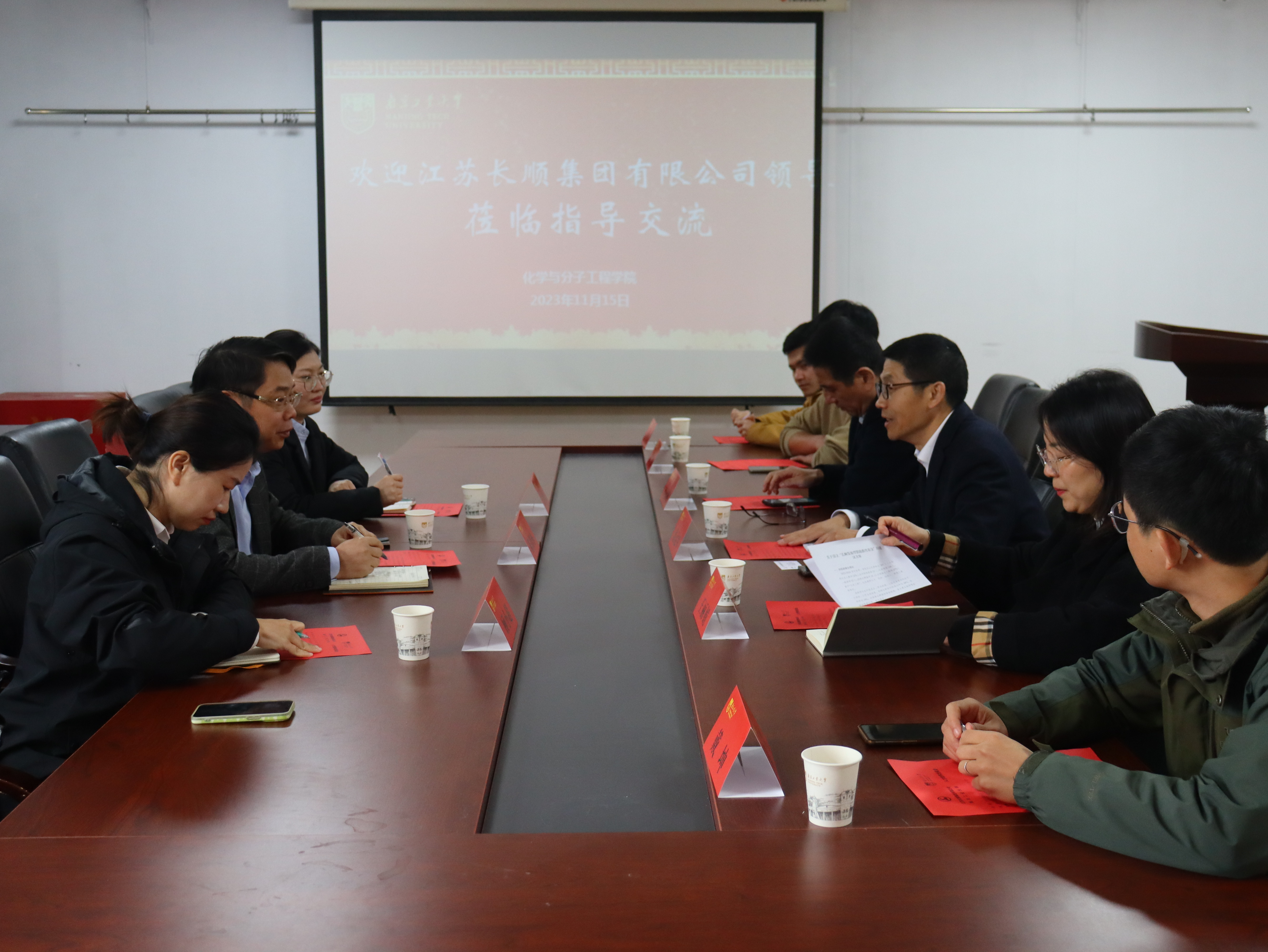 潘运军对江苏长顺集团有限公司的来访表示热烈的欢迎,并围绕党建引领、人才培养、学科发展等方面详细介绍了公司及公司情况,期待双方在人才培养、科研合作等方面搭建更广泛的交流平台,深化产学研融合。王丽娟就长顺集团设立奖学金提出了具体方案。唐永明介绍了公司科研主要方向和成果。