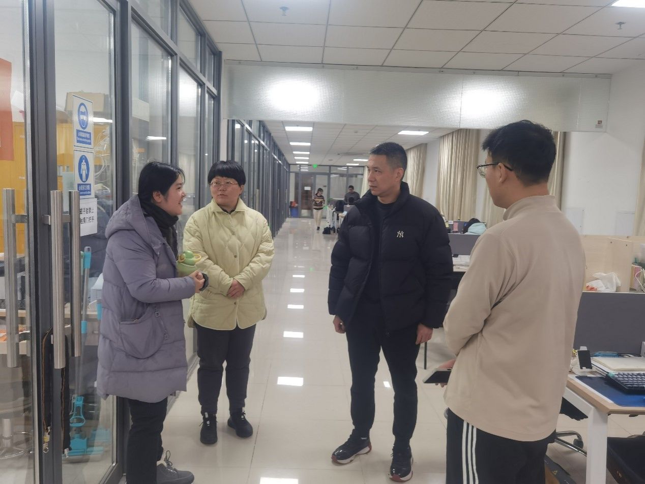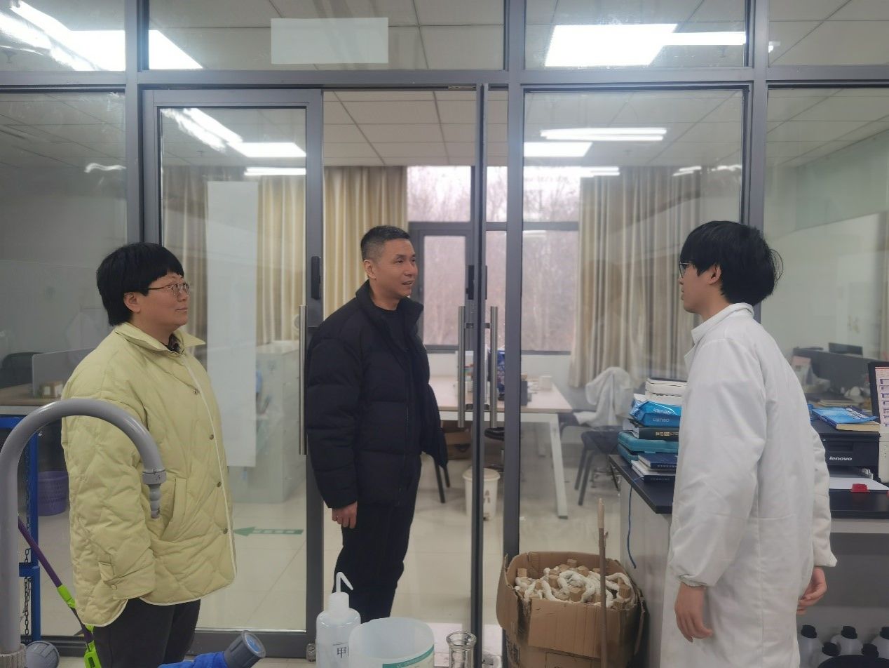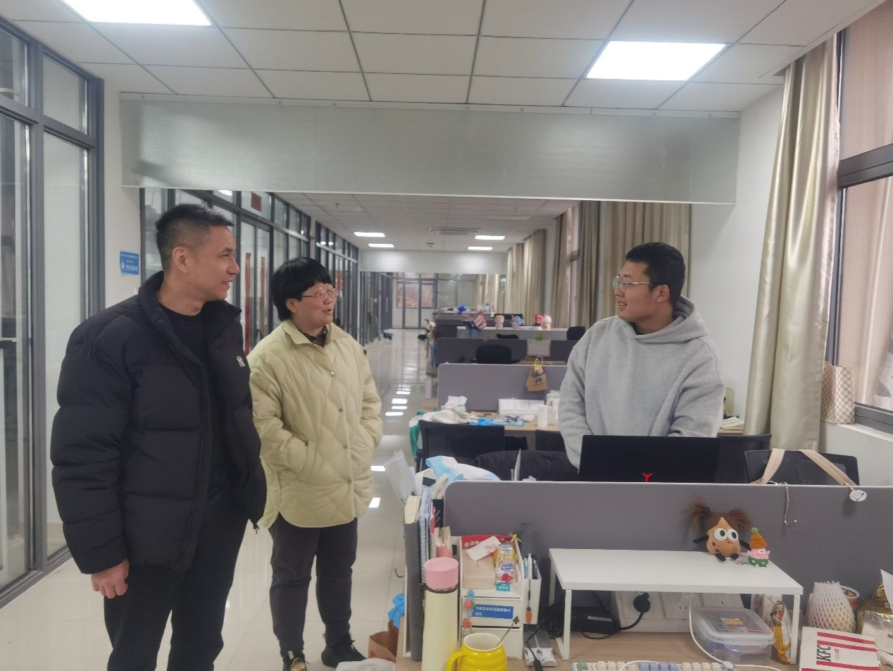 在实验室,老师们与研究生们亲切交谈,详细了解同学们的学习生活情况和留校需求。周辉要求同学们实验过程中注意安全,并表示公司将与公司相关部门保持沟通,切实解决同学们的实际困难。王丽娟、陈晓君叮嘱同学们注意宿舍用电安全与外出人身安全,常和家人、导师、同学联系,出现问题及时和辅导员老师沟通。