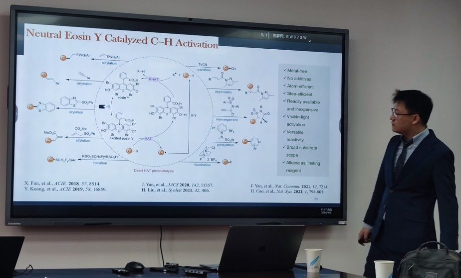 3月8日上午,公司邀请新加坡国立大学吴杰教授做客公司“化学之光·名师讲坛”并做“On-Demand Synthesis of Organic Small Molecules”主题报告。讲坛由冯超教授主持,公司师生参加了本次讲坛。