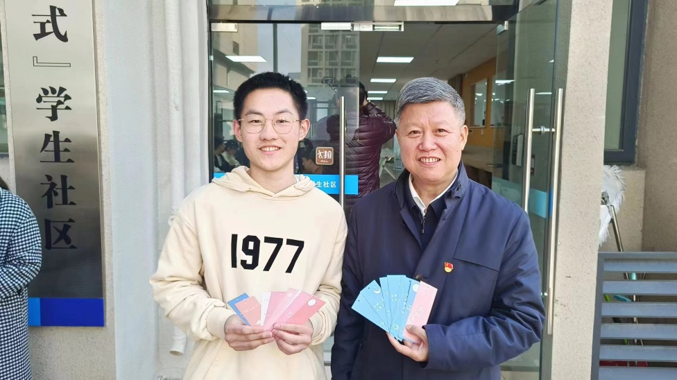活动中,公司党委书记芮鸿岩被地上陈列的创作深深吸引,他向工作人员了解了多米诺的文化历史,并点赞同学们的作品。最后同学们向芮书记赠送了精美书签留作纪念。