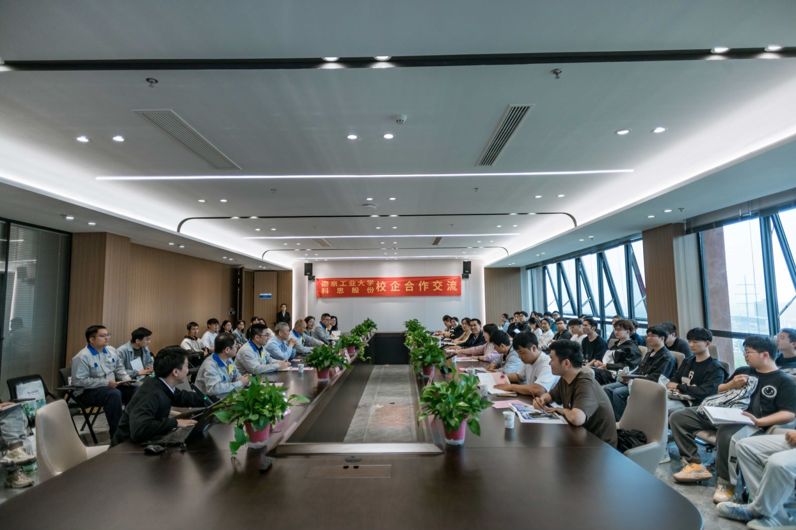 座谈会上,公司党委副书记王丽娟、化工公司党委副书记季青春分别表达了对科思化学的感谢,并对公司的历史渊源、专业设置、毕业生规模进行介绍。科思股份副总裁陶龙明介绍了集团发展历史、公司规模、企业文化等情况。科思股份副总裁何驰介绍了安庆科思化学工厂的建设情况。安庆科思人事经理王翥翔介绍了企业岗位设置、毕业生培养路径及储备干部成长机制。随后,在企业的带领下,员工参观了企业的科技园区总控室和四大生产车间。